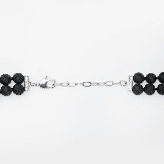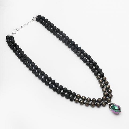 Black Lava Stone & Pyrite Layered Necklace with Shell Pearl Pendant – Basraa Luxe Collection