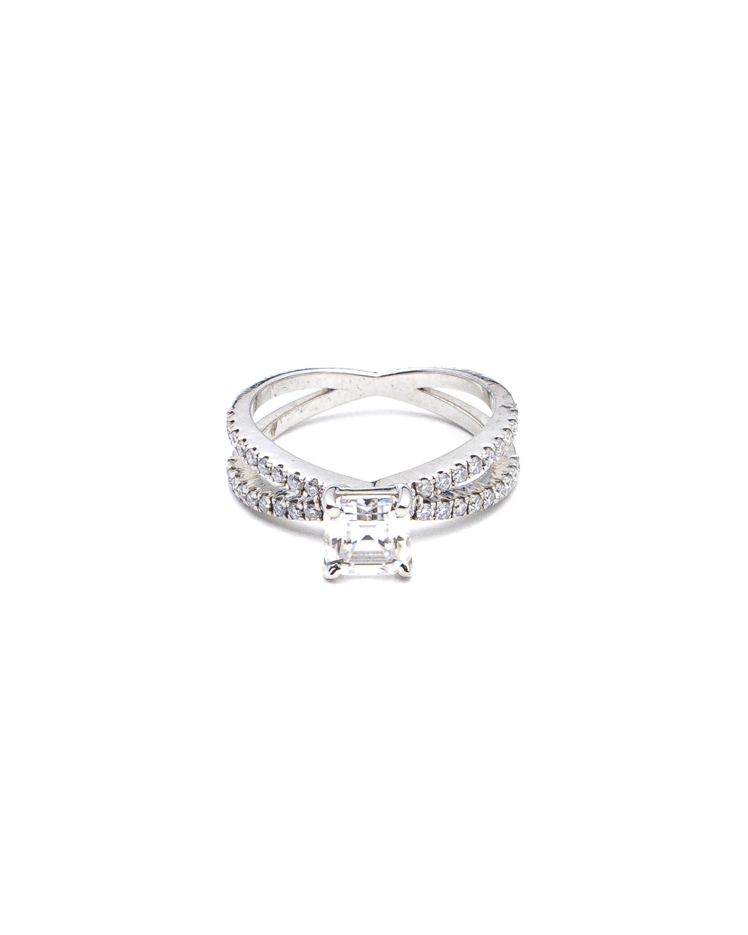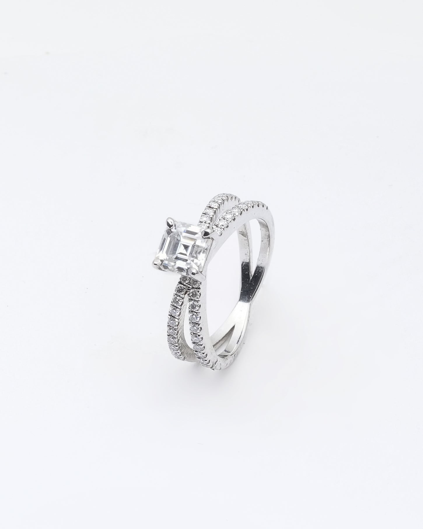 The Ascher Twist Moissanite Ring is a striking fusion of modern elegance and classic design. At its heart lies a brilliant 80-cent Asscher-cut moissanite stone, radiating unparalleled sophistication.