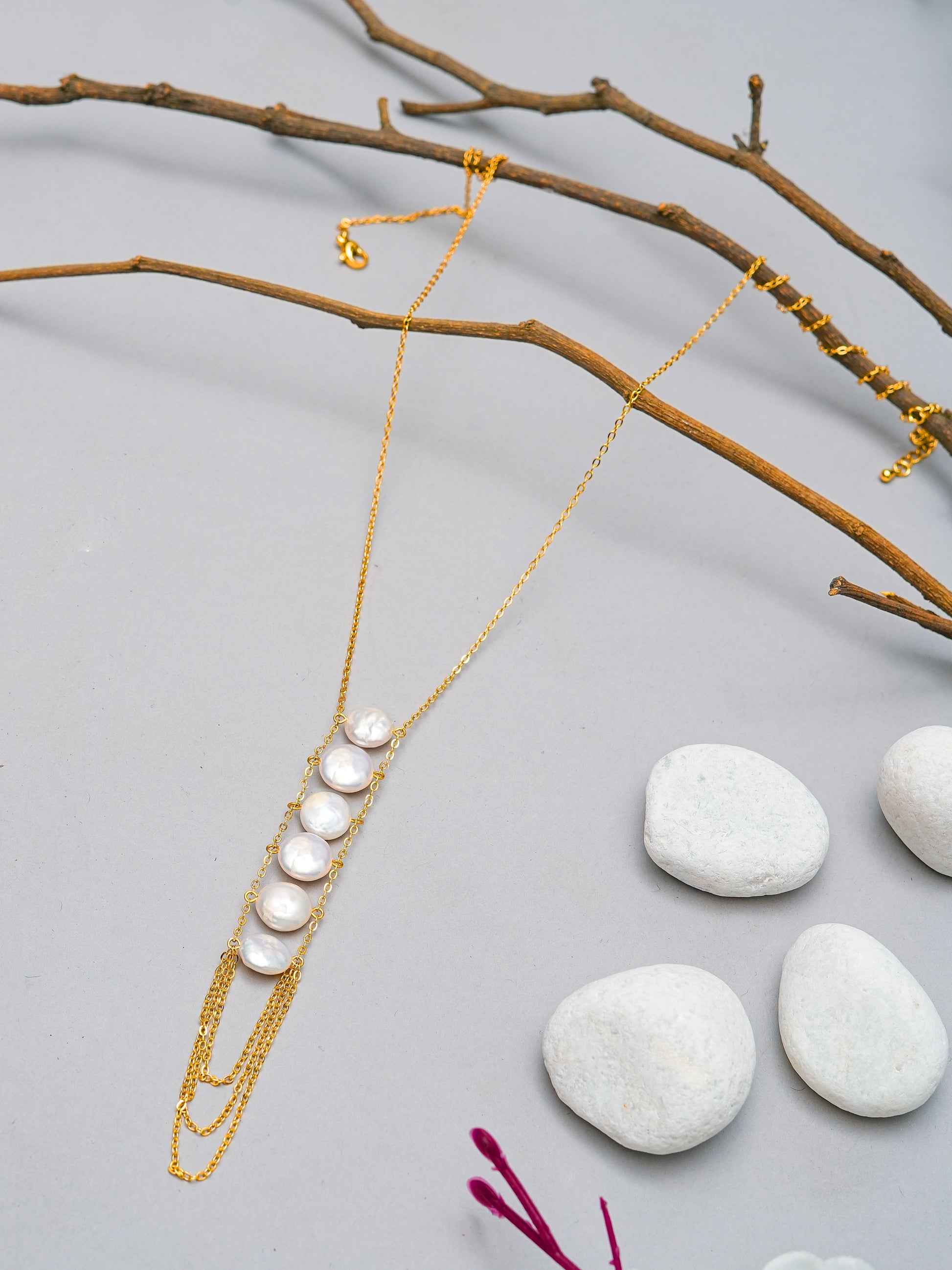 Material: Genuine Freshwater Pearls, Gold-Plated Chain & Accents