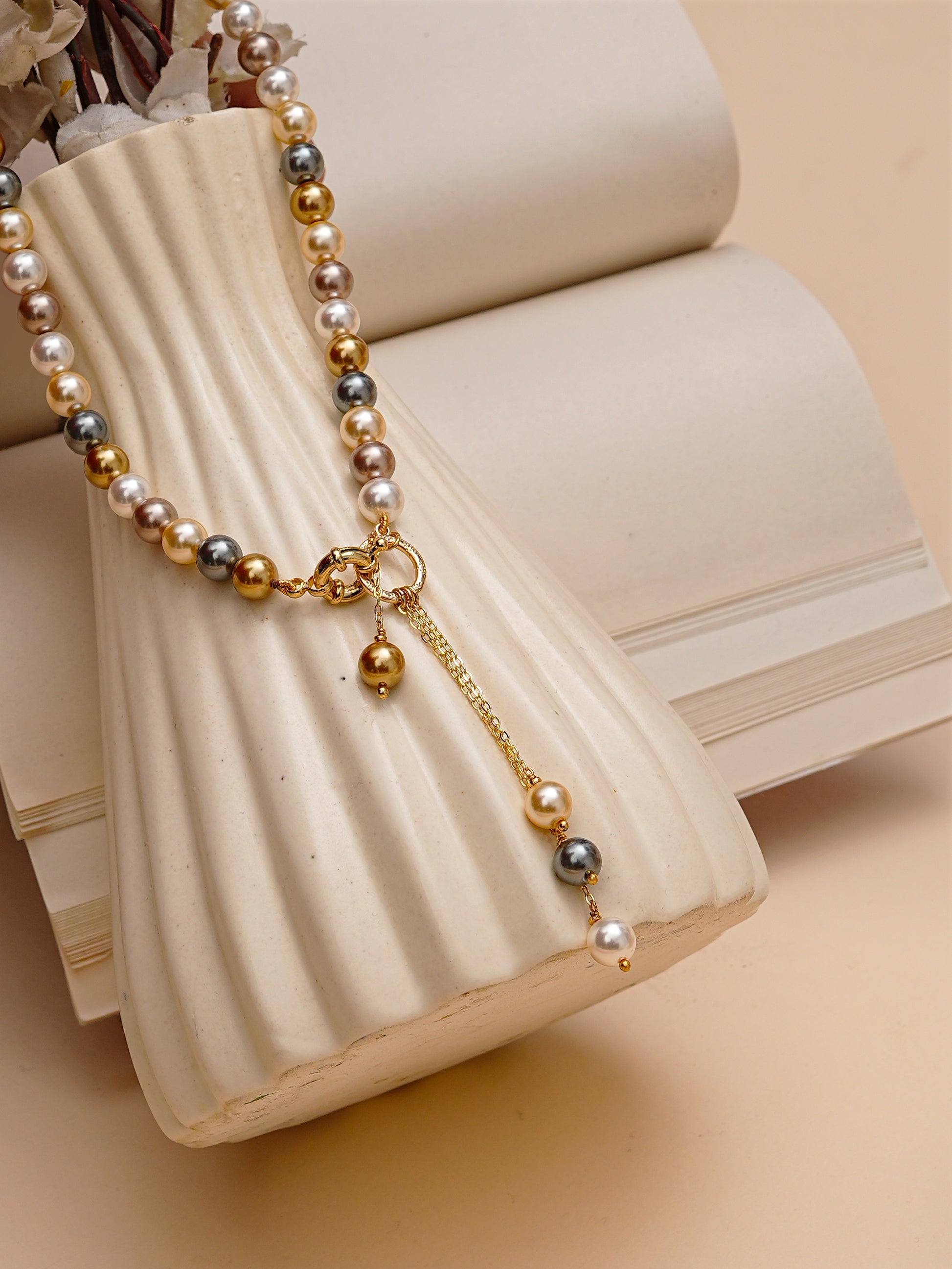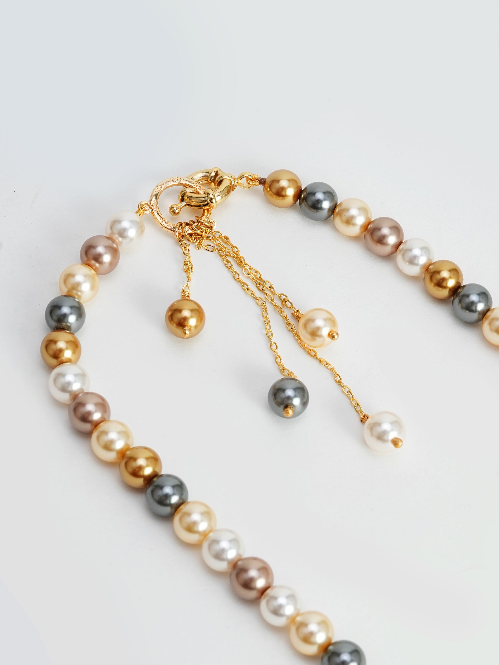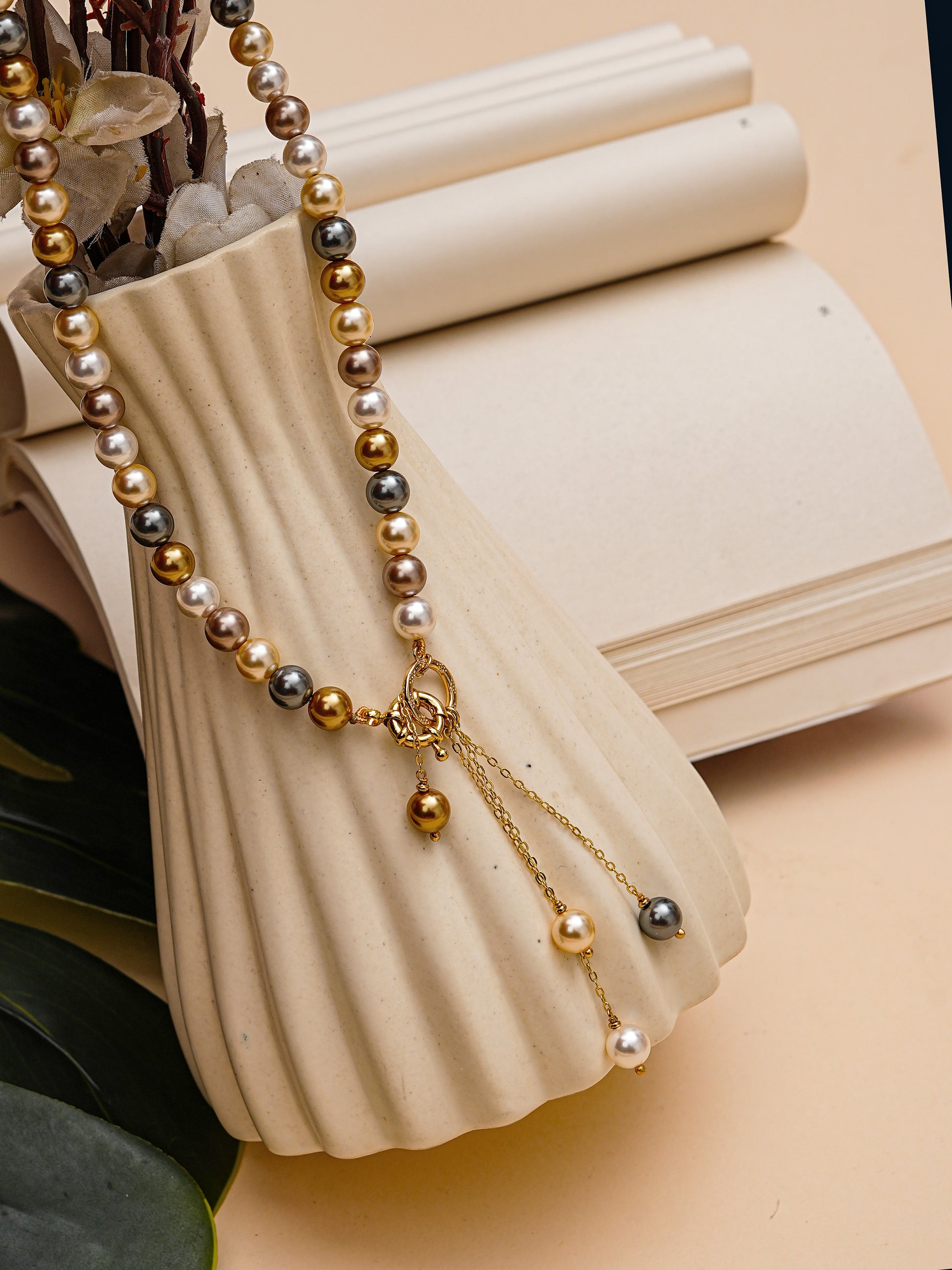 A stunning mix of gold, silver, and champagne-toned pearls, finished with a statement toggle clasp and cascading drops for effortless glamour.