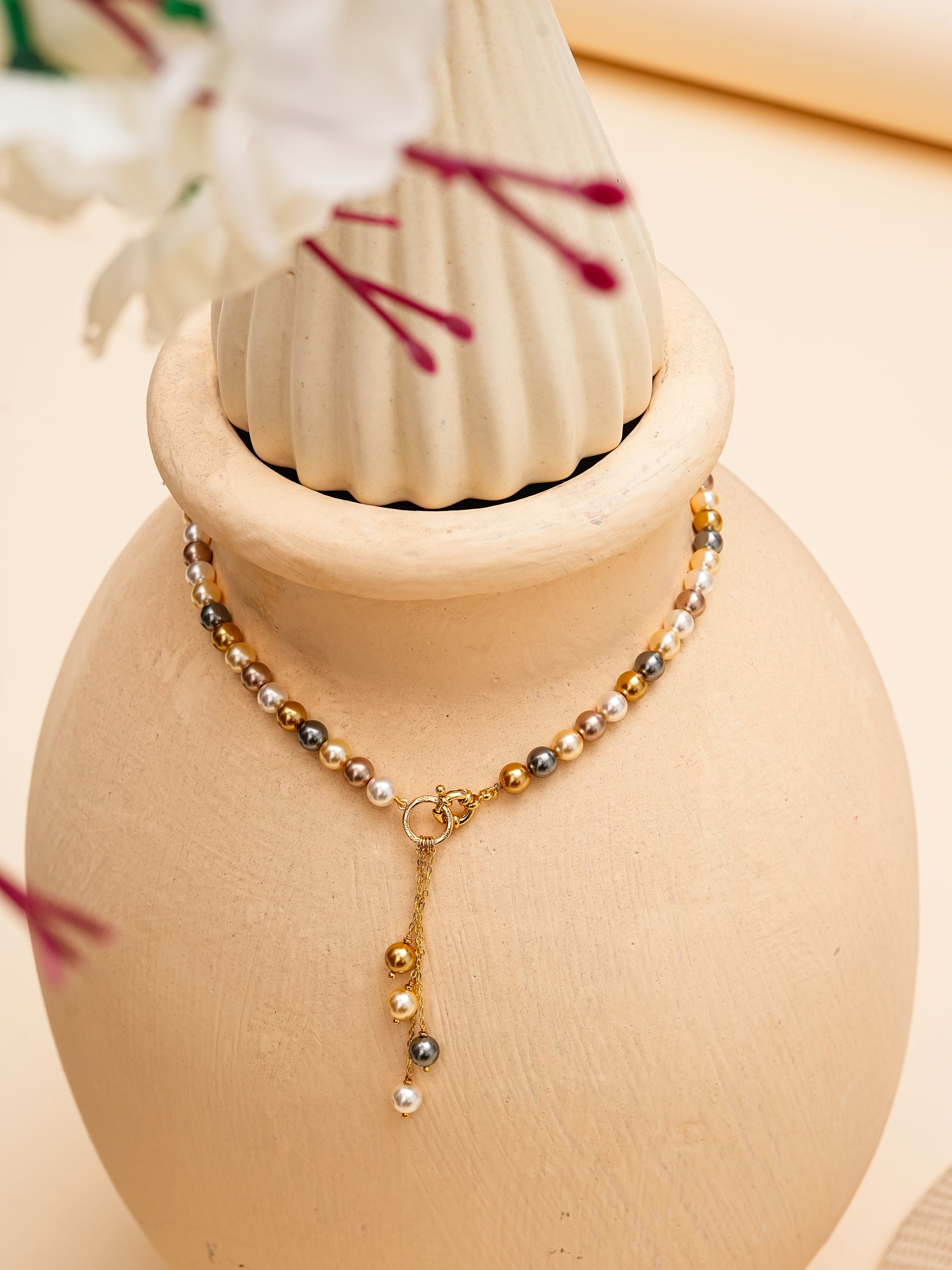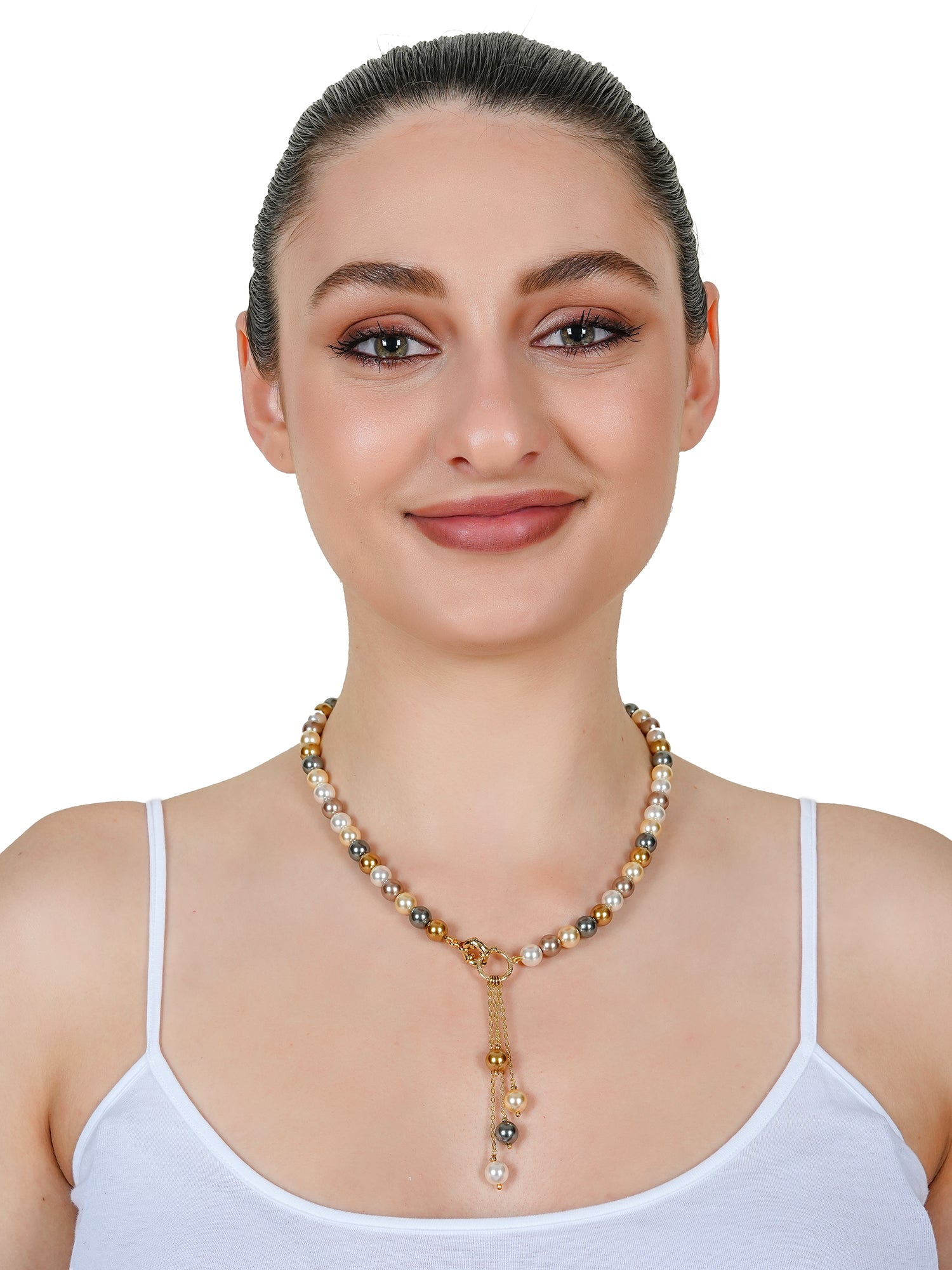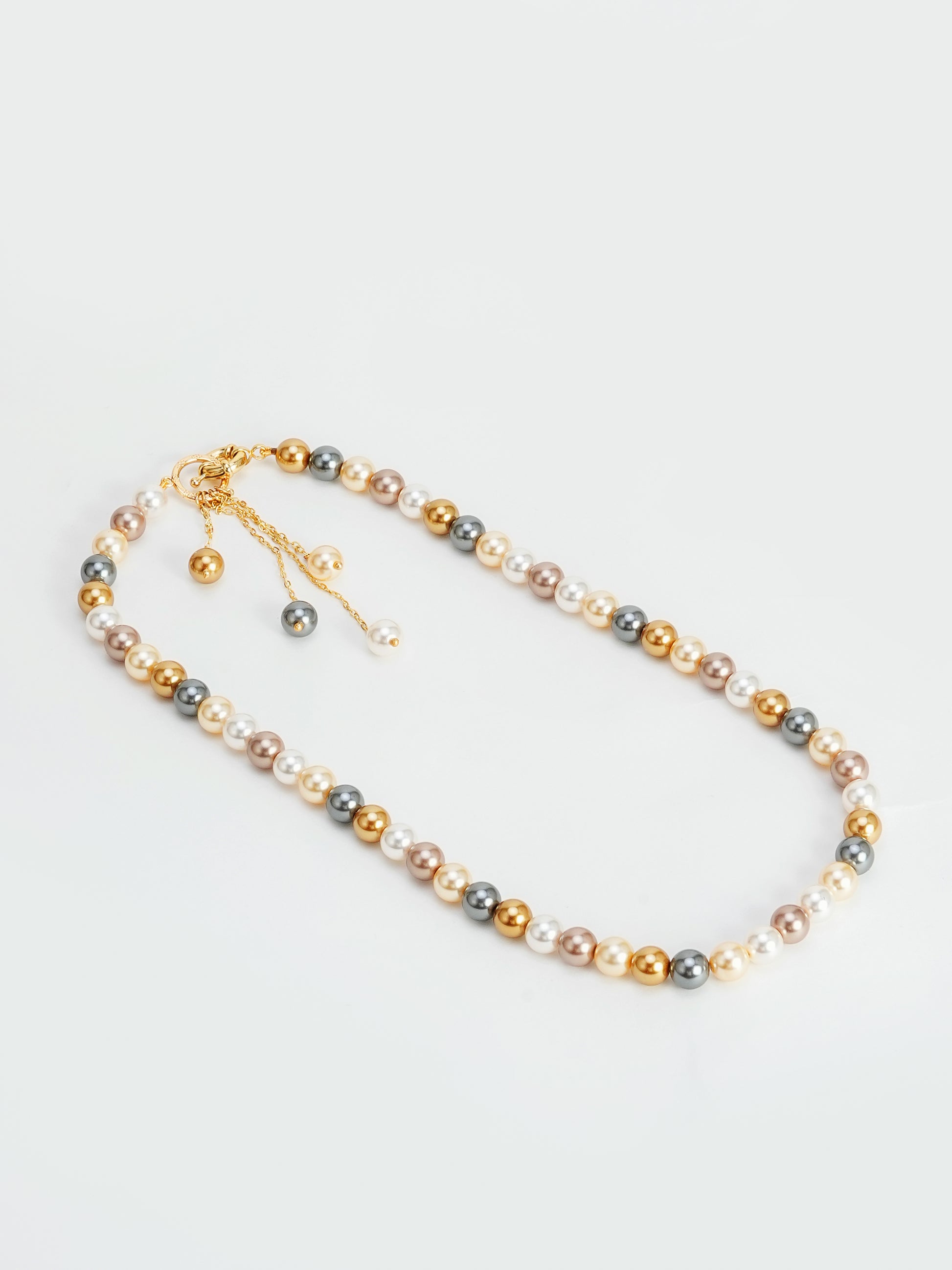 A stunning mix of gold, silver, and champagne-toned pearls, finished with a statement toggle clasp and cascading drops for effortless glamour.