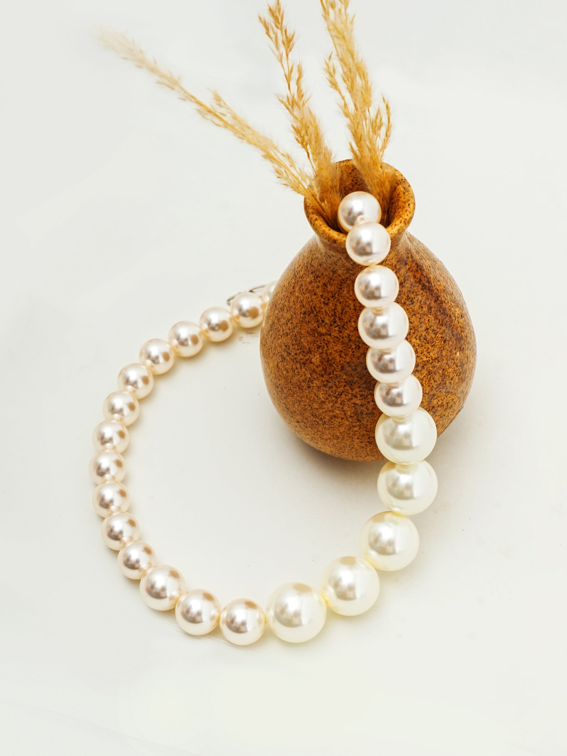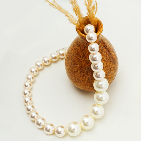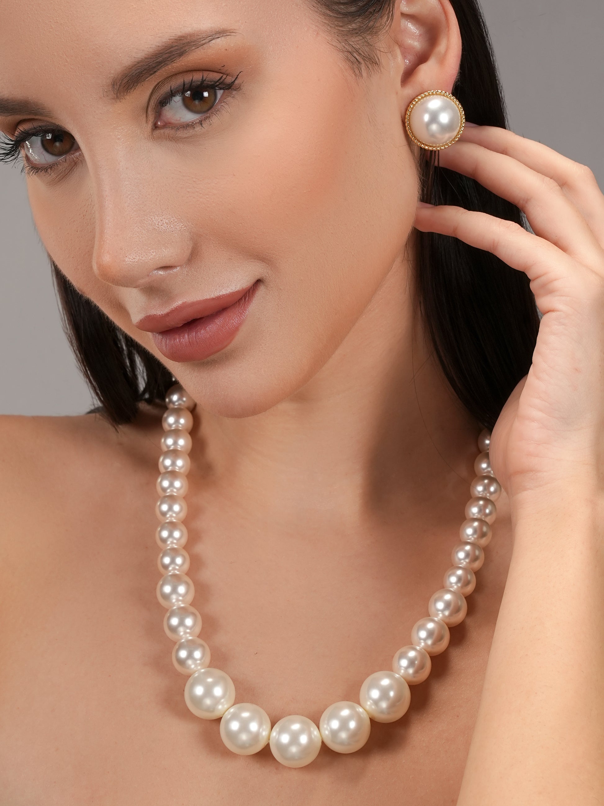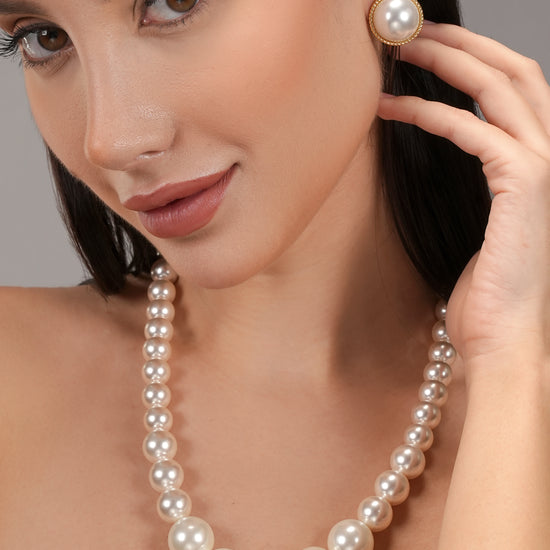 Classic Basraa Pearl Statement Necklace Set – Luxury Round Pearls with Gold Stud Earrings