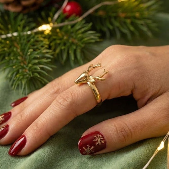 Celebrate understated elegance with this exquisitely crafted Reindeer Motif Ring by BASRAA. Designed in 92.5 sterling silver and finished with a high-polish shine, this ring features a sculpted reindeer face and antlers—symbolising grace, strength, and quiet confidence.