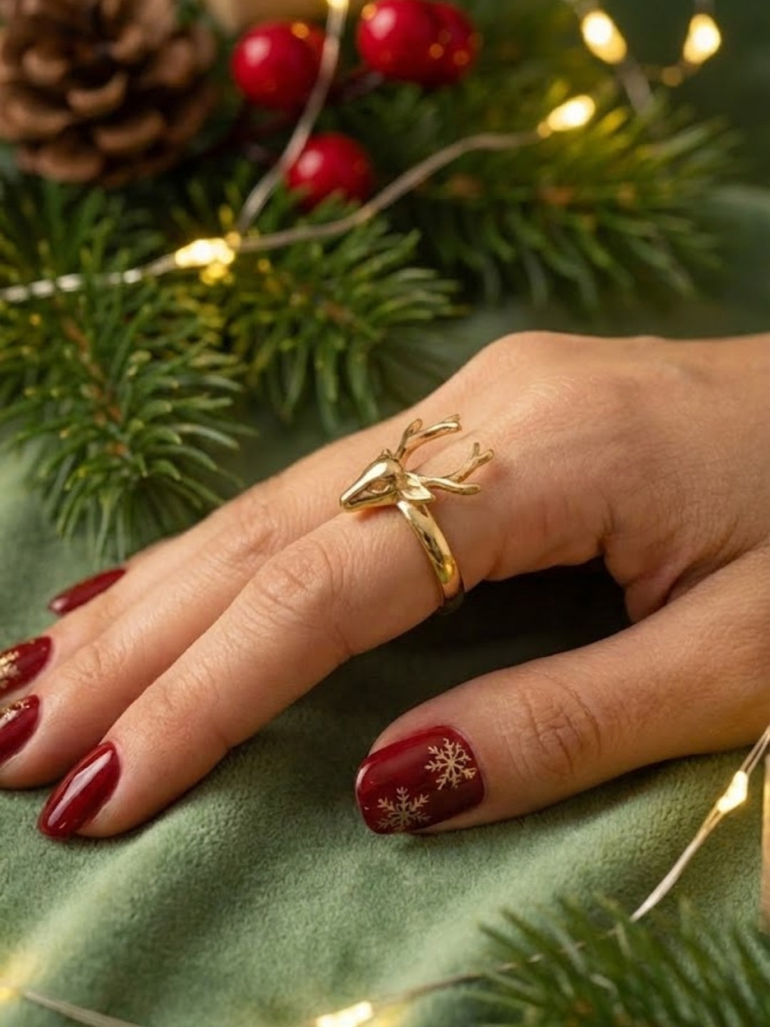 The sleek open-band design, making it perfect for everyday wear as well as subtle festive styling. Whether paired with workwear, casual outfits, or winter looks, this ring adds a refined statement without being overpowering.