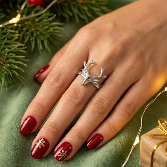 Celebrate understated elegance with this exquisitely crafted Reindeer Motif Ring by BASRAA. Designed in 92.5 sterling silver and finished with a high-polish shine, this ring features a sculpted reindeer face and antlers—symbolising grace, strength, and quiet confidence.