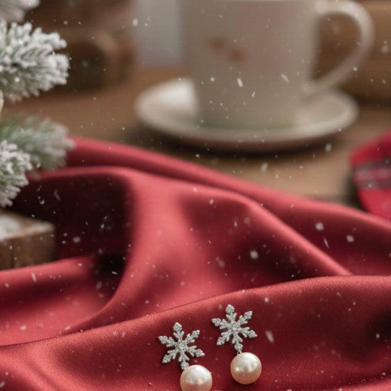 Delicate, graceful, and timeless — this Basraa Sterling Silver Snowflake Pearl Pendant captures the beauty of subtle elegance. Crafted in 92.5 sterling silver, the pendant features a finely detailed snowflake motif paired with a soft, luminous pearl drop, symbolising purity, individuality, and quiet strength.