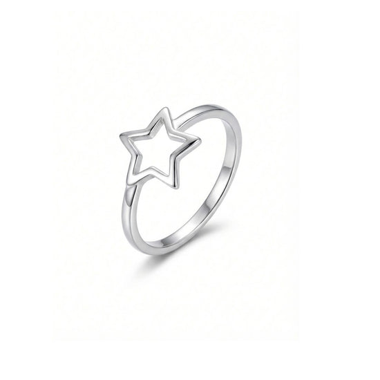 Basraa 92.5 Sterling Silver Star Outline Ring for Women