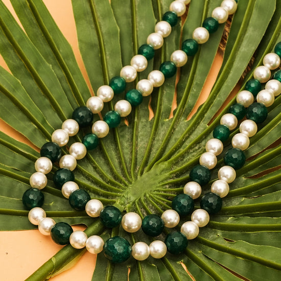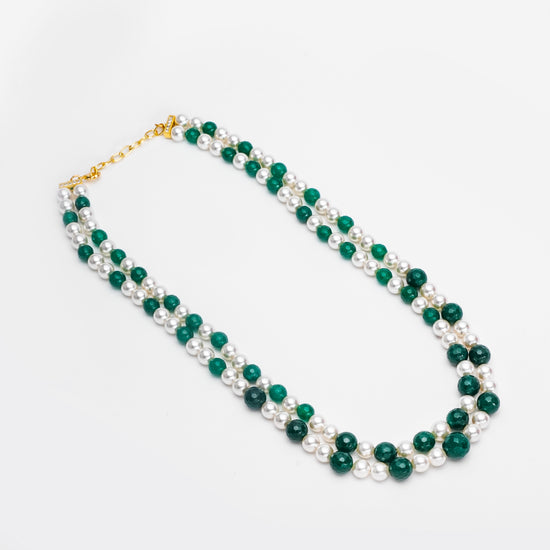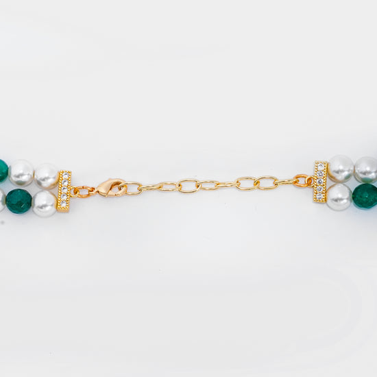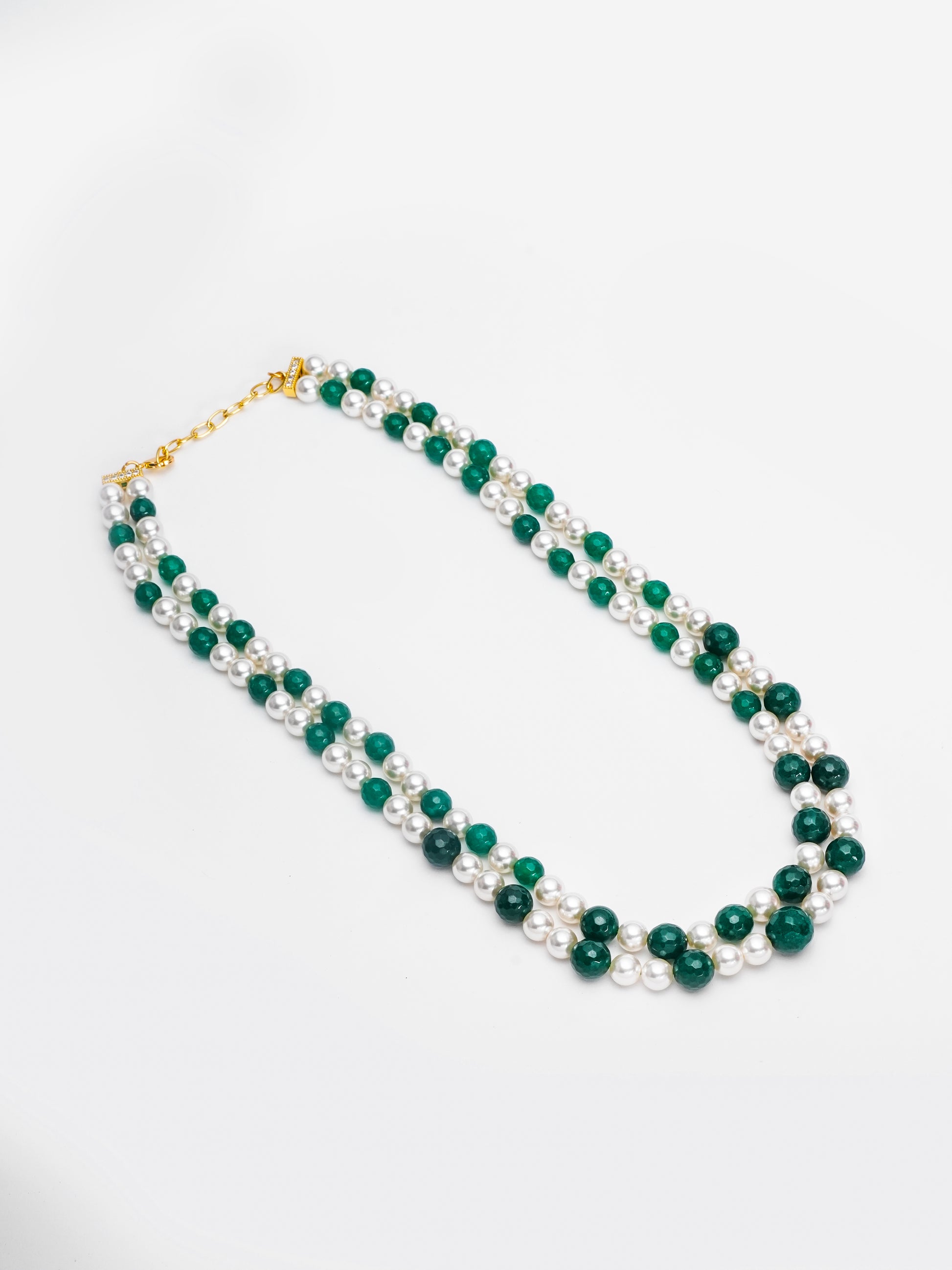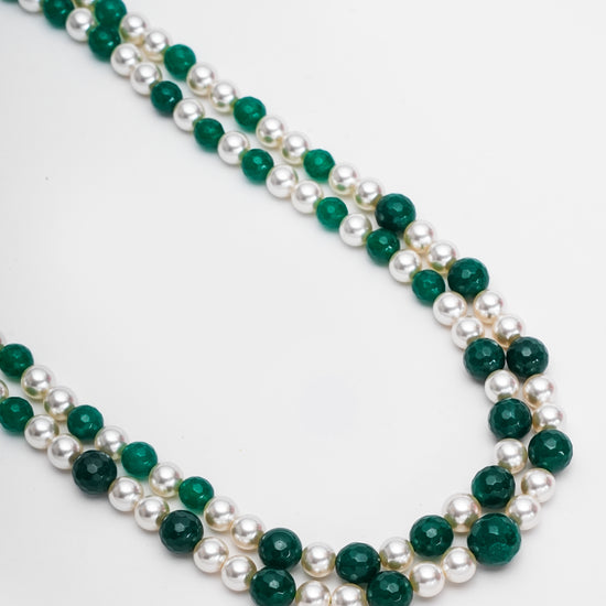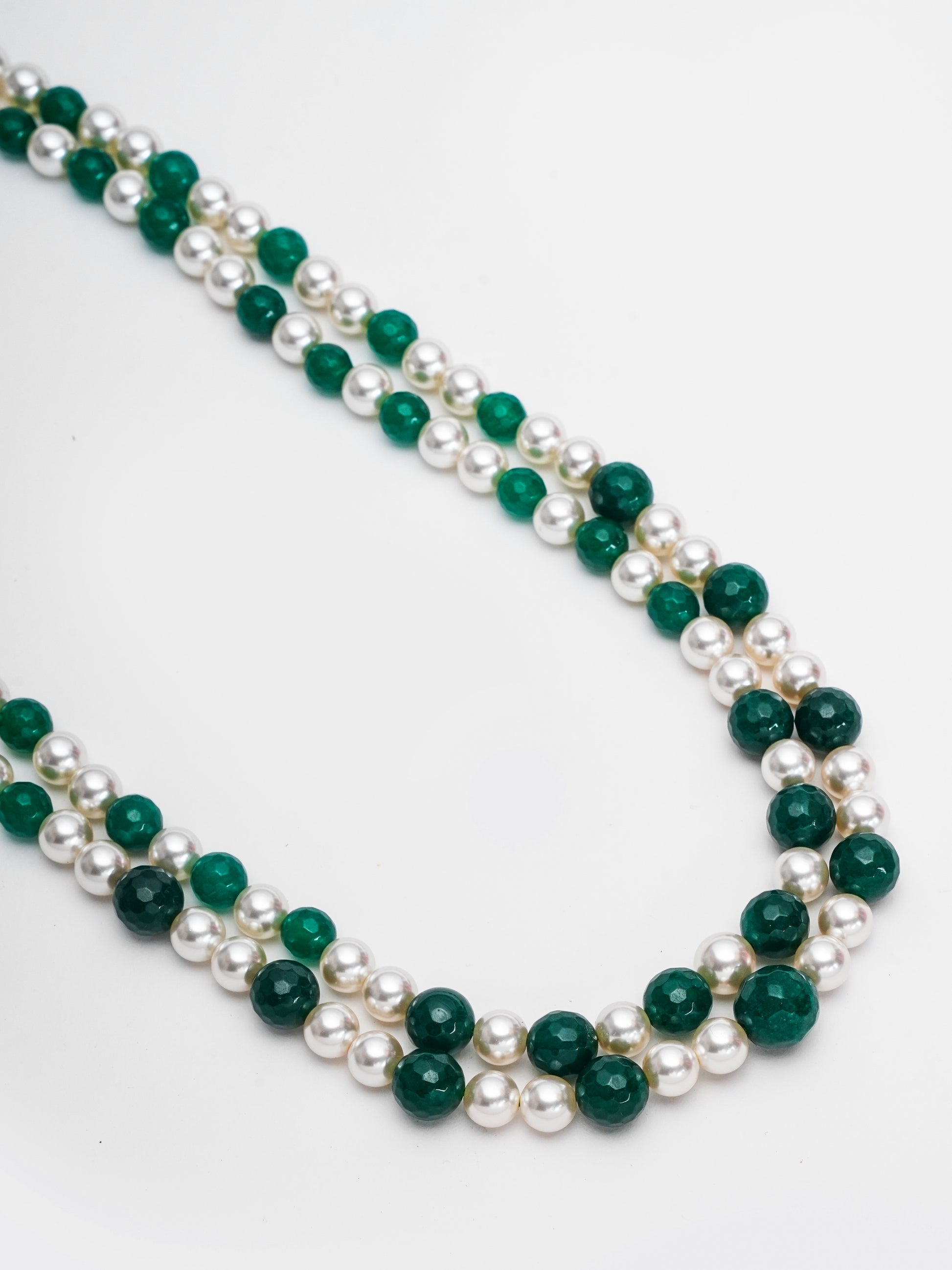 Unveil the luxury of tradition reimagined with the Basraa Emerald Green Radiance Dual-Layer Pearl Necklace.
