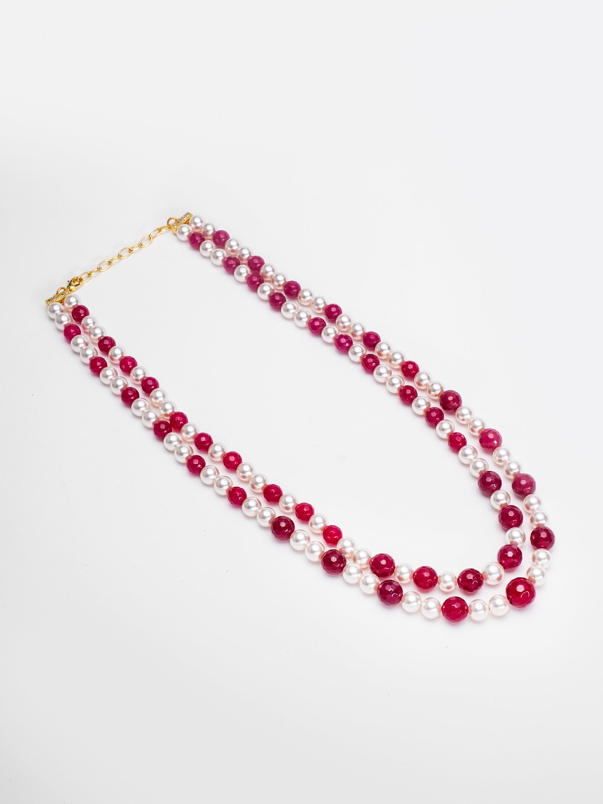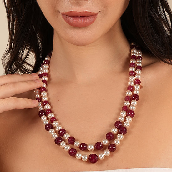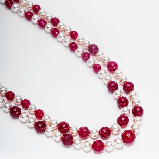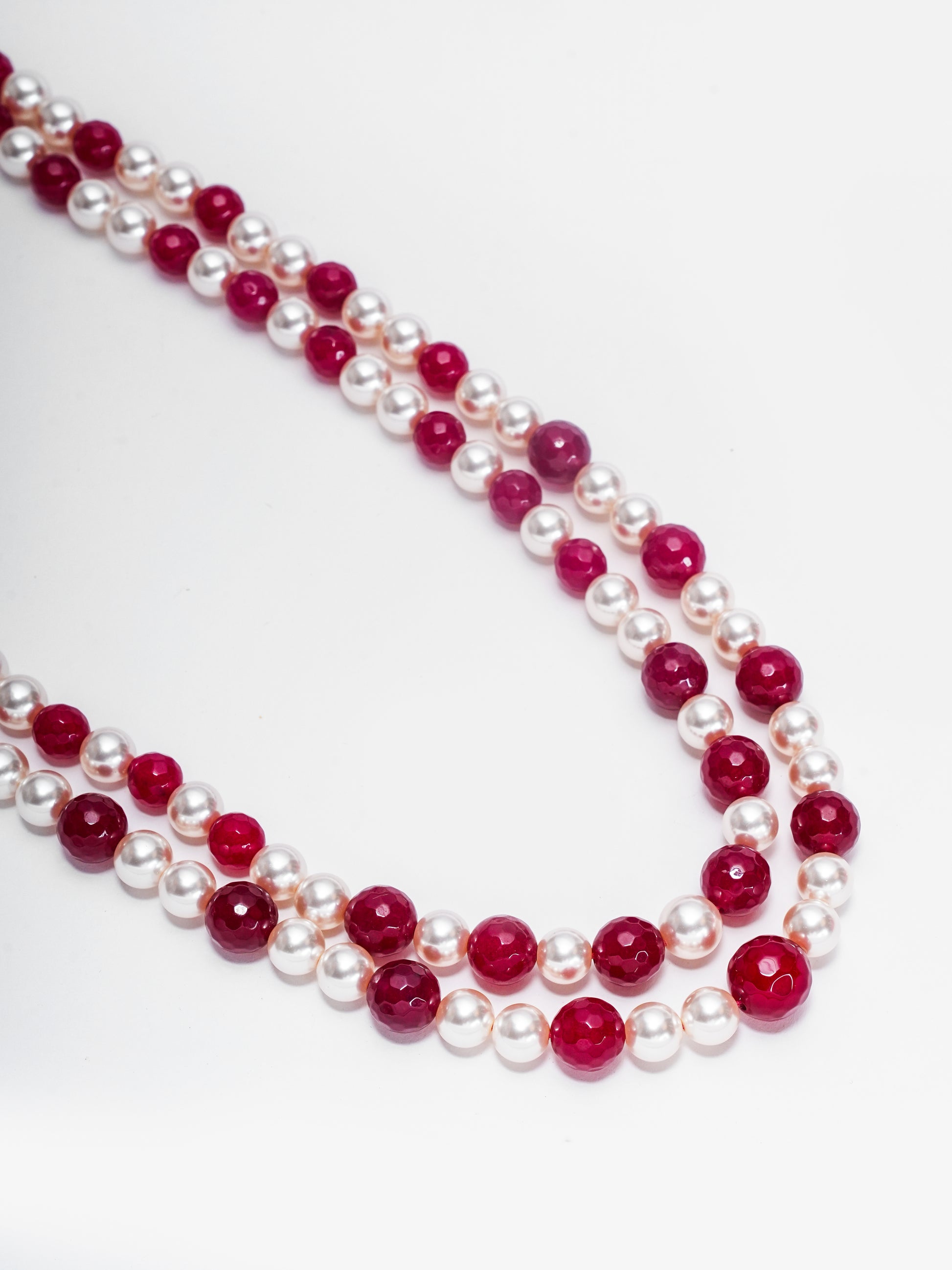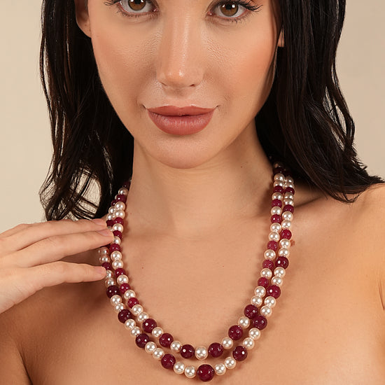 Basraa Ruby Red Jade Radiance Dual-Layer Pearl Necklace
