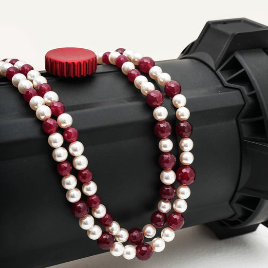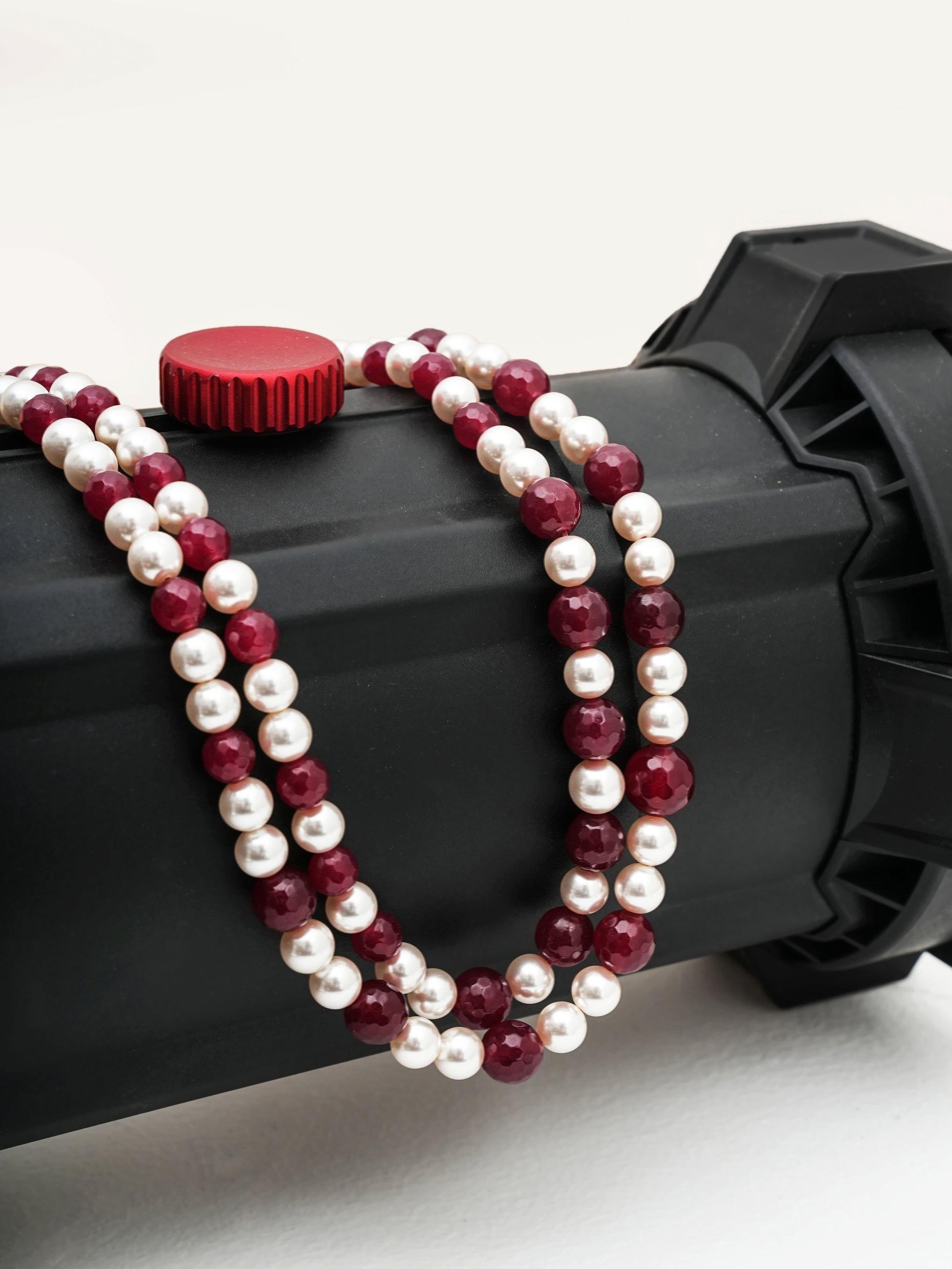 A graceful fusion of deep ruby-red beads and creamy white pearls, this handcrafted beauty captures the essence of timeless allure and royal femininity.
