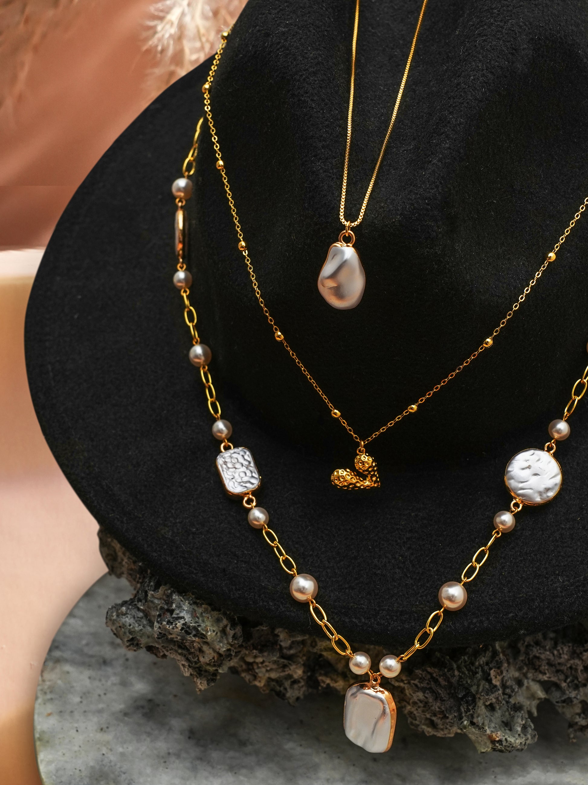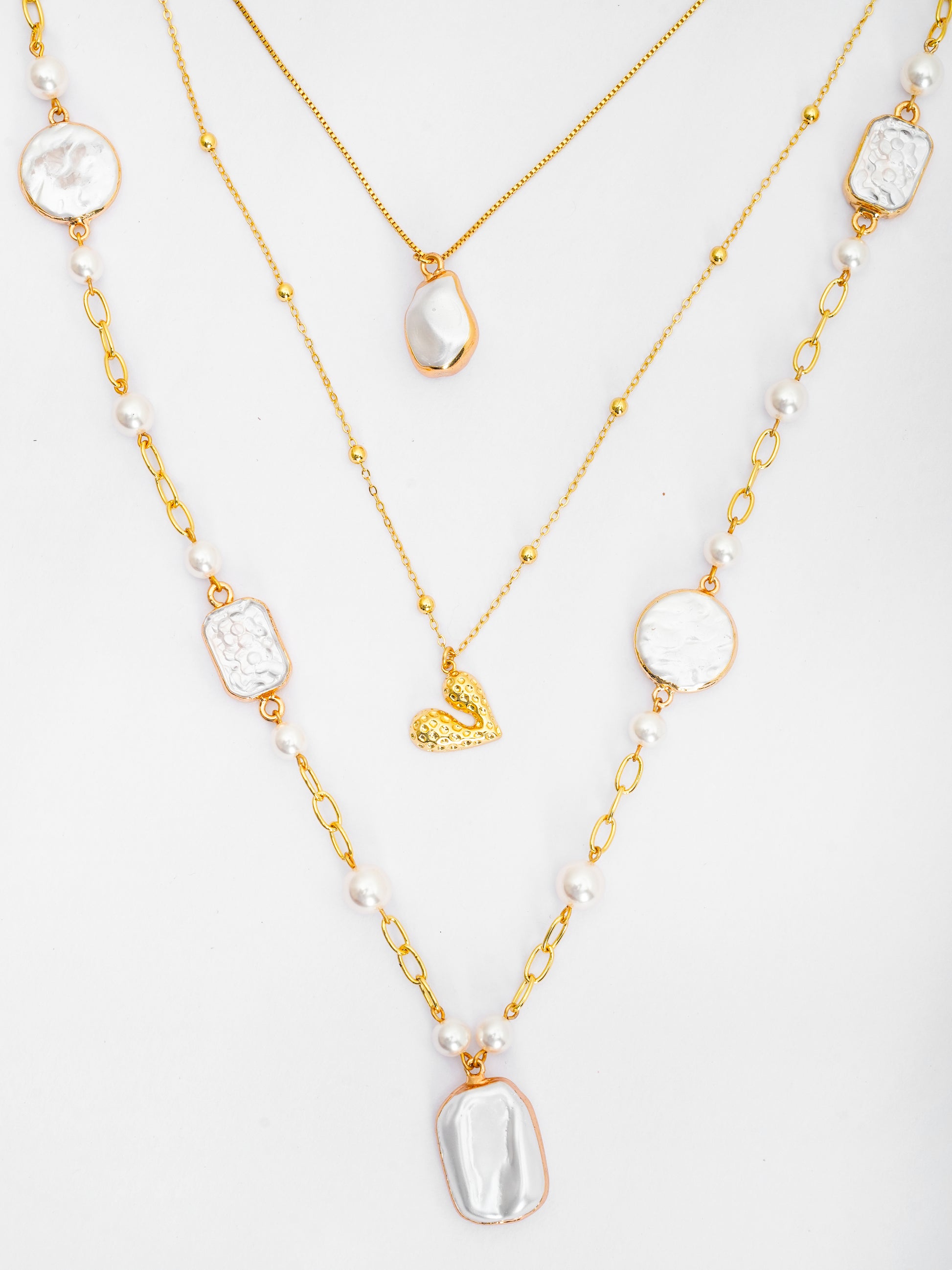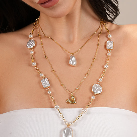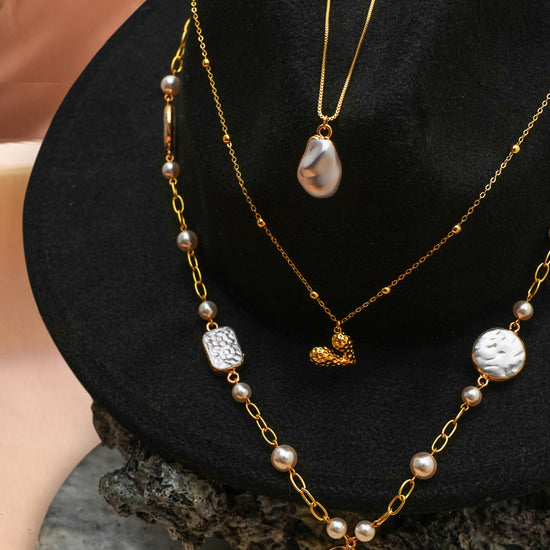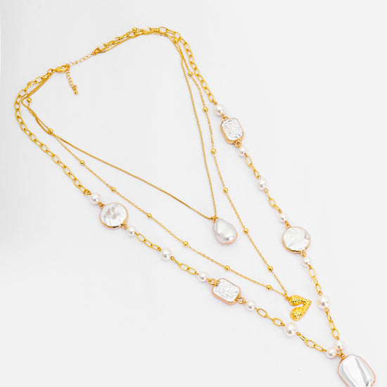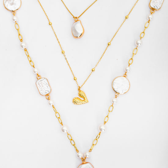 Basraa Baroque Pearl & Gold Heart Layered Necklace – Luxe Statement Set