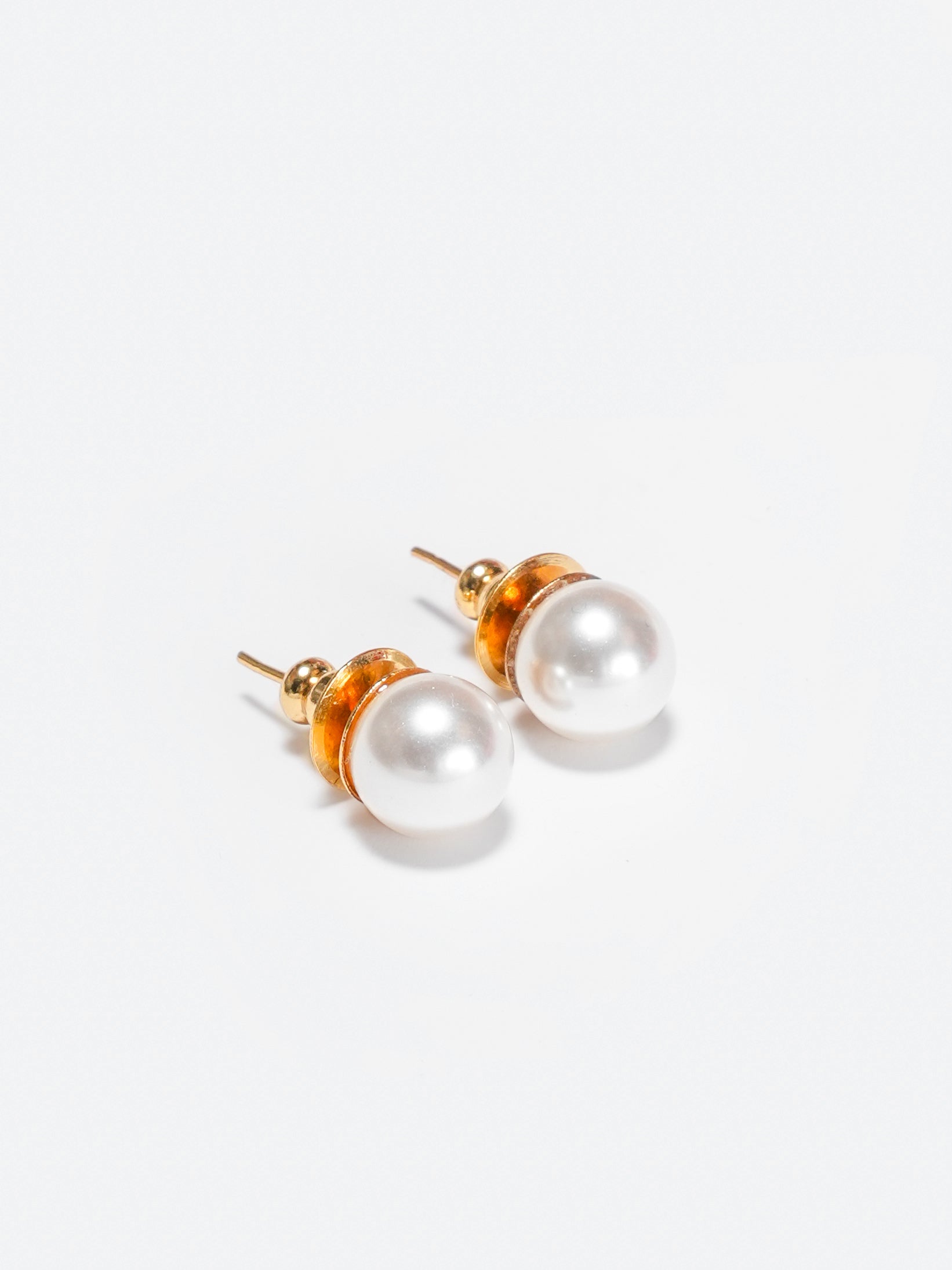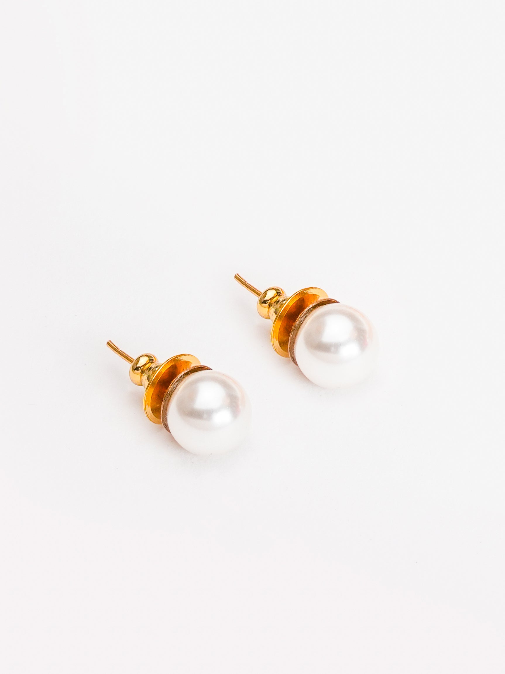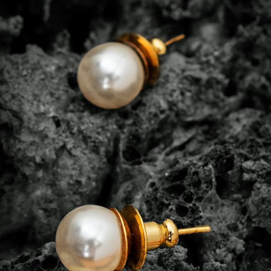 Basraa Classic White Pearl Stud Earrings in Golden Finish