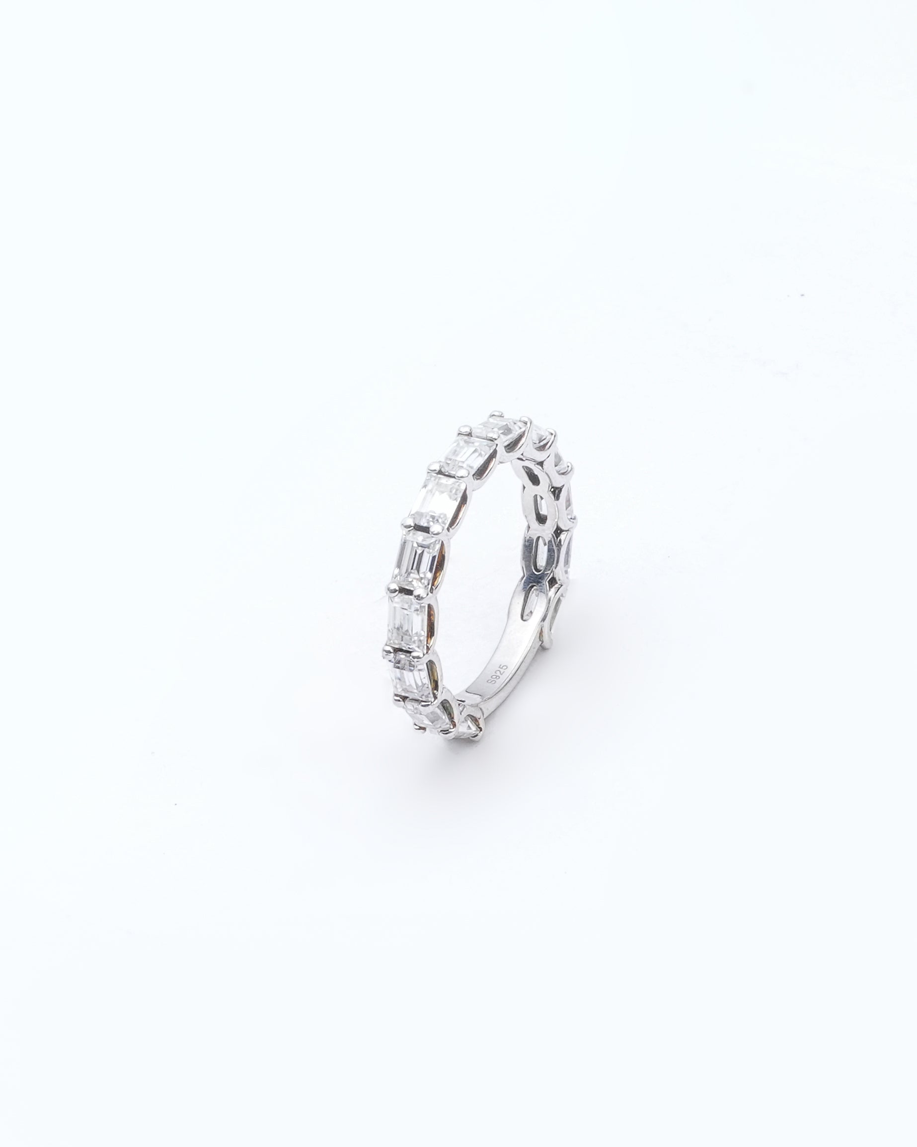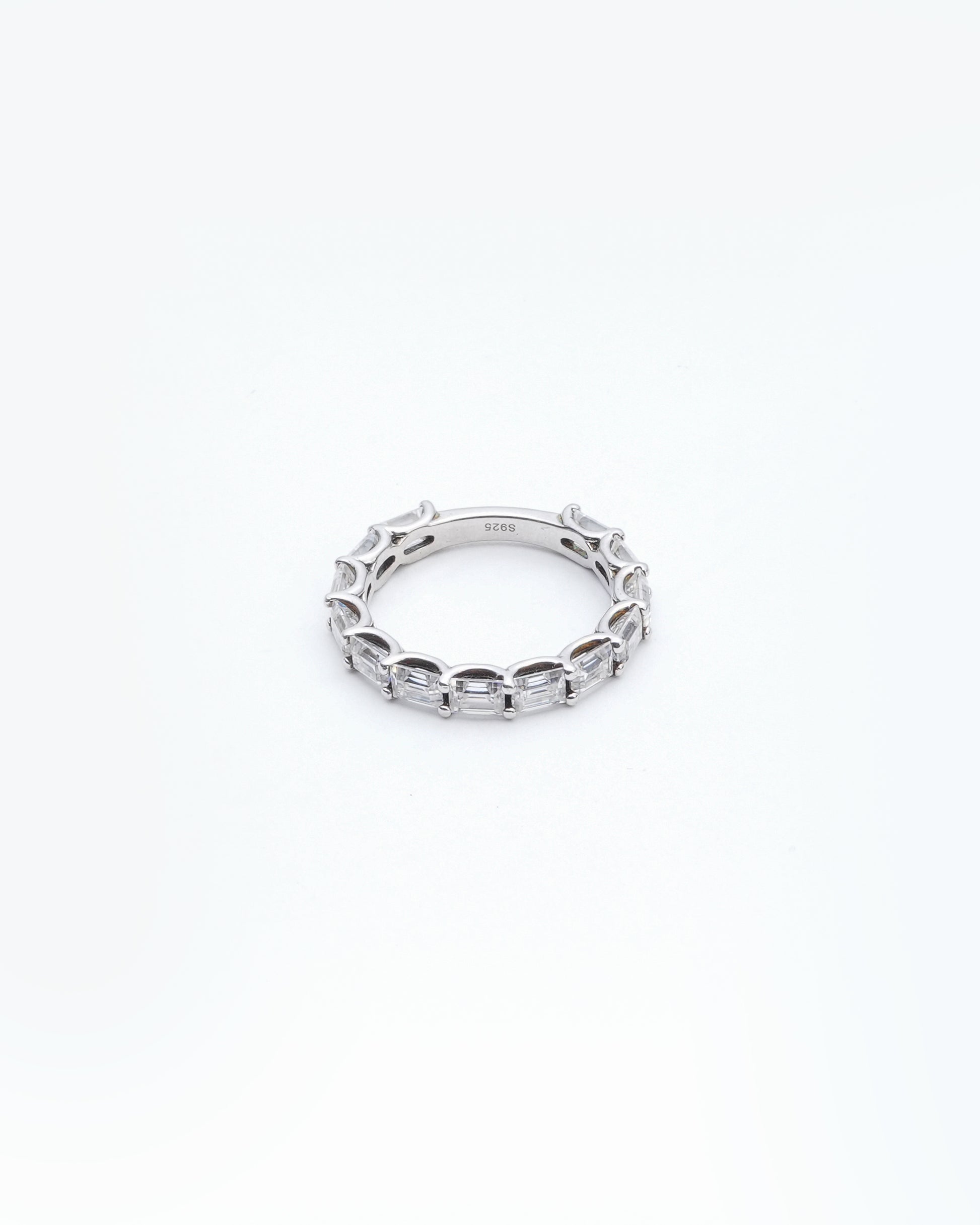Design: Baguette-cut moissanite set in a seamless eternity band