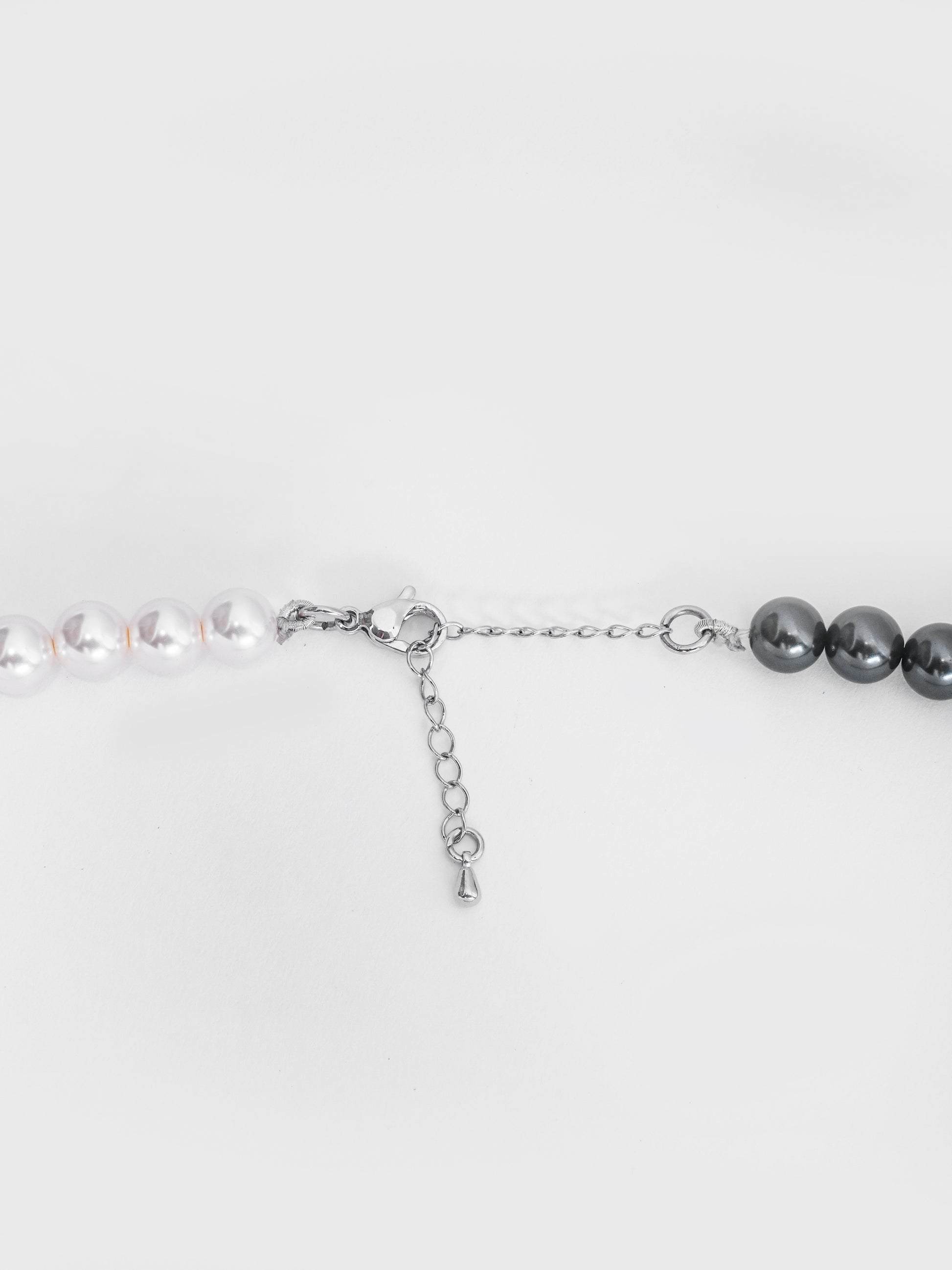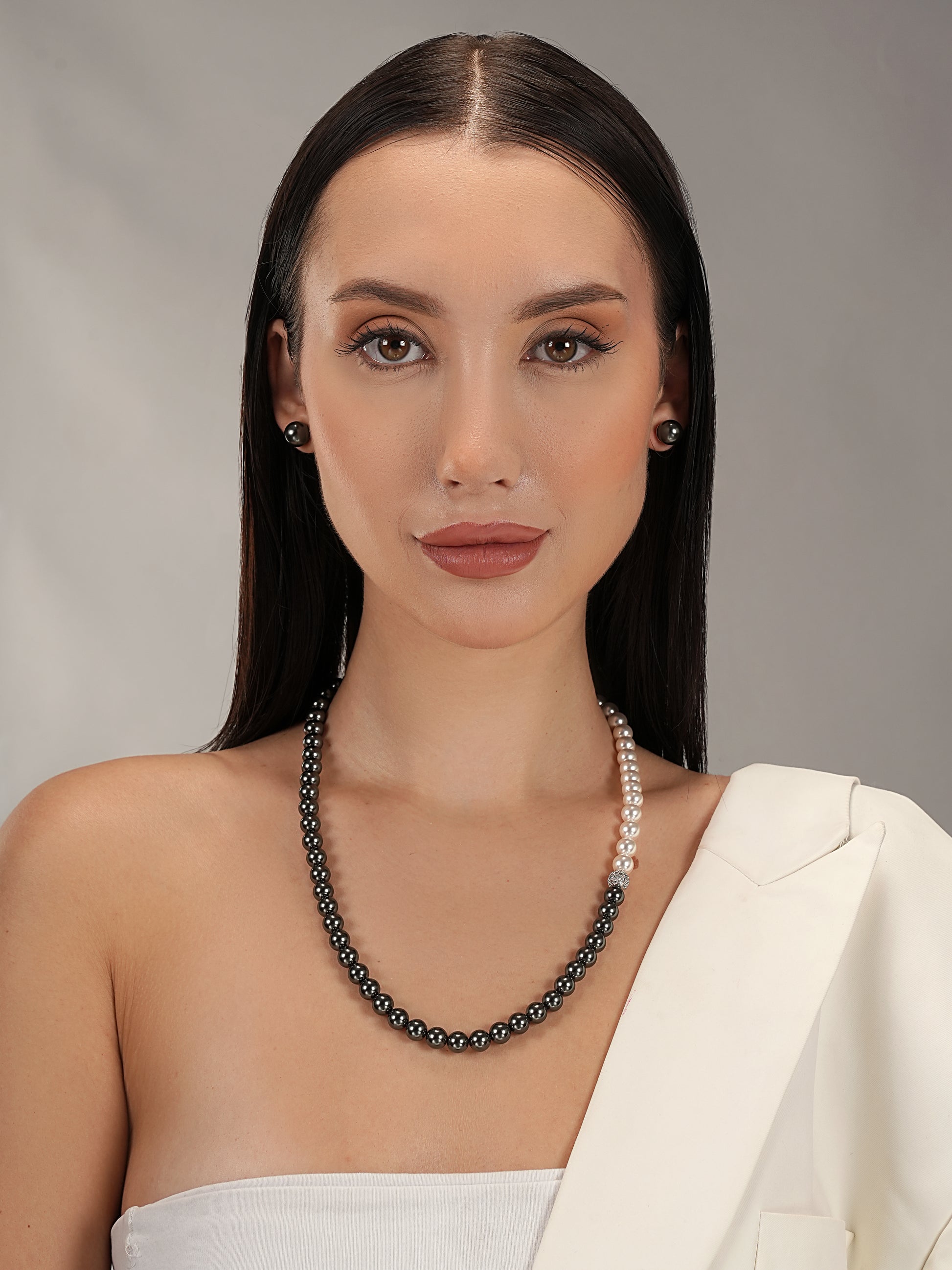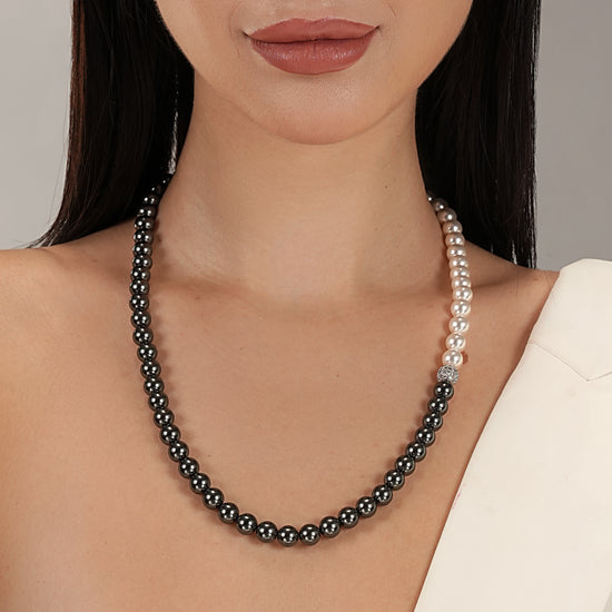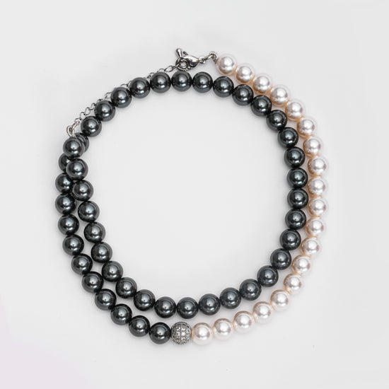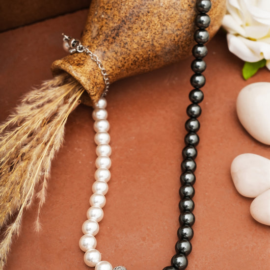 Dual-Tone Elegance Pearl Necklace – Black & White Harmony