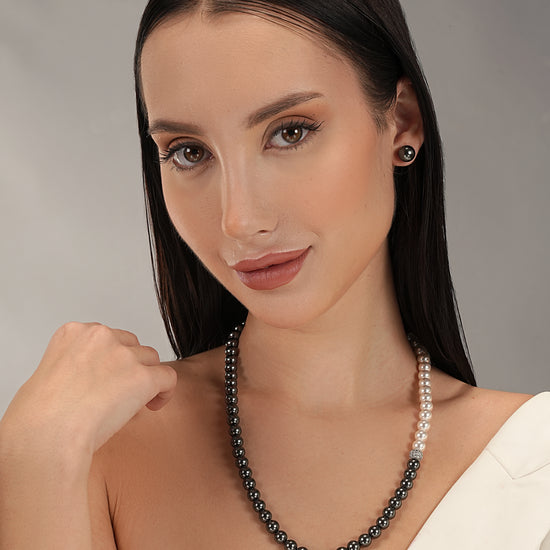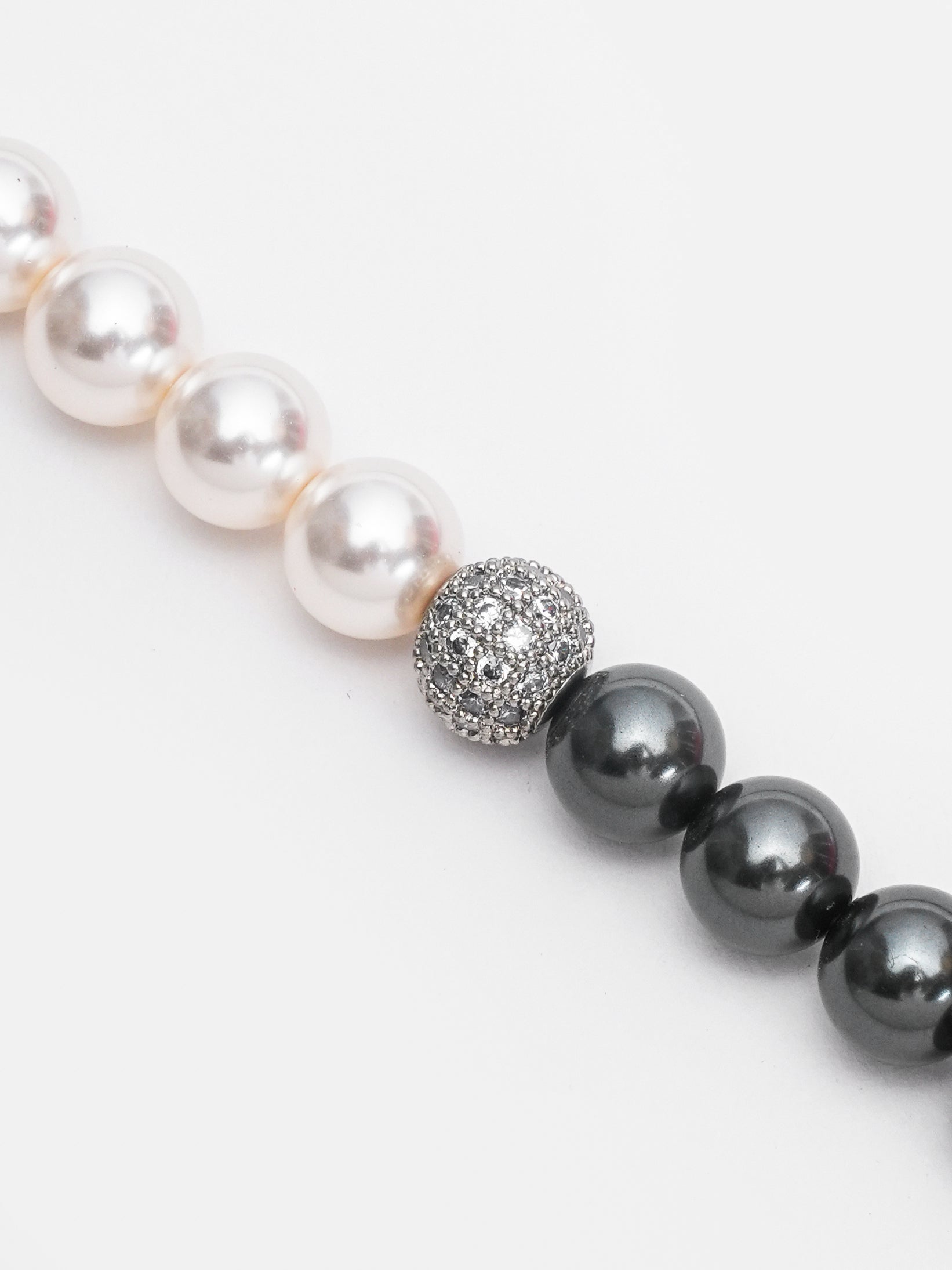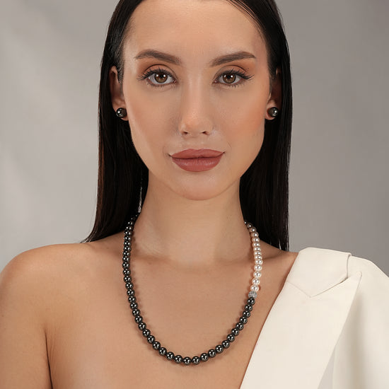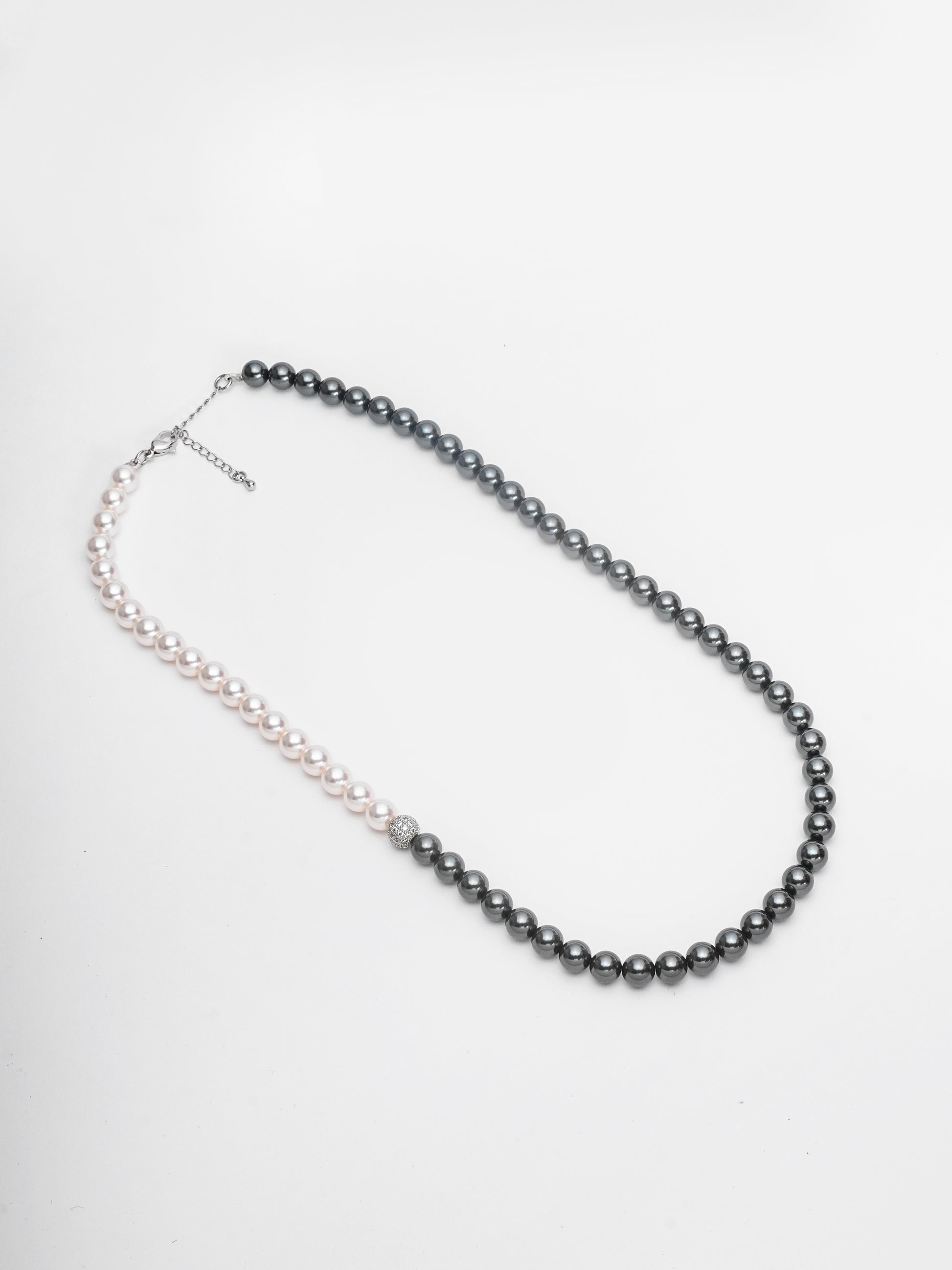 Dual-Tone Elegance Pearl Necklace – Black & White Harmony