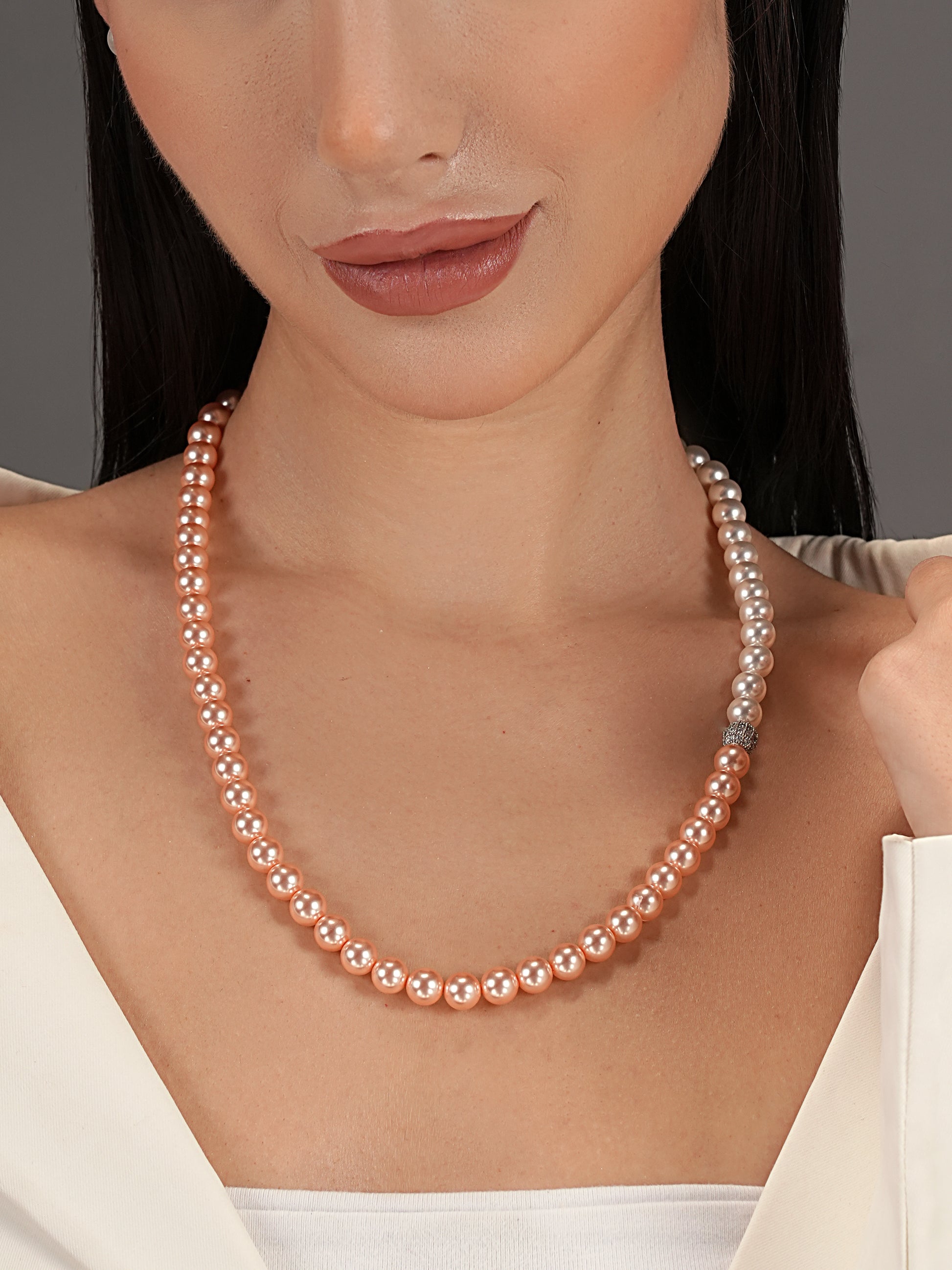 🩷 Basraa Peach Blush Dual-Tone Pearl Necklace