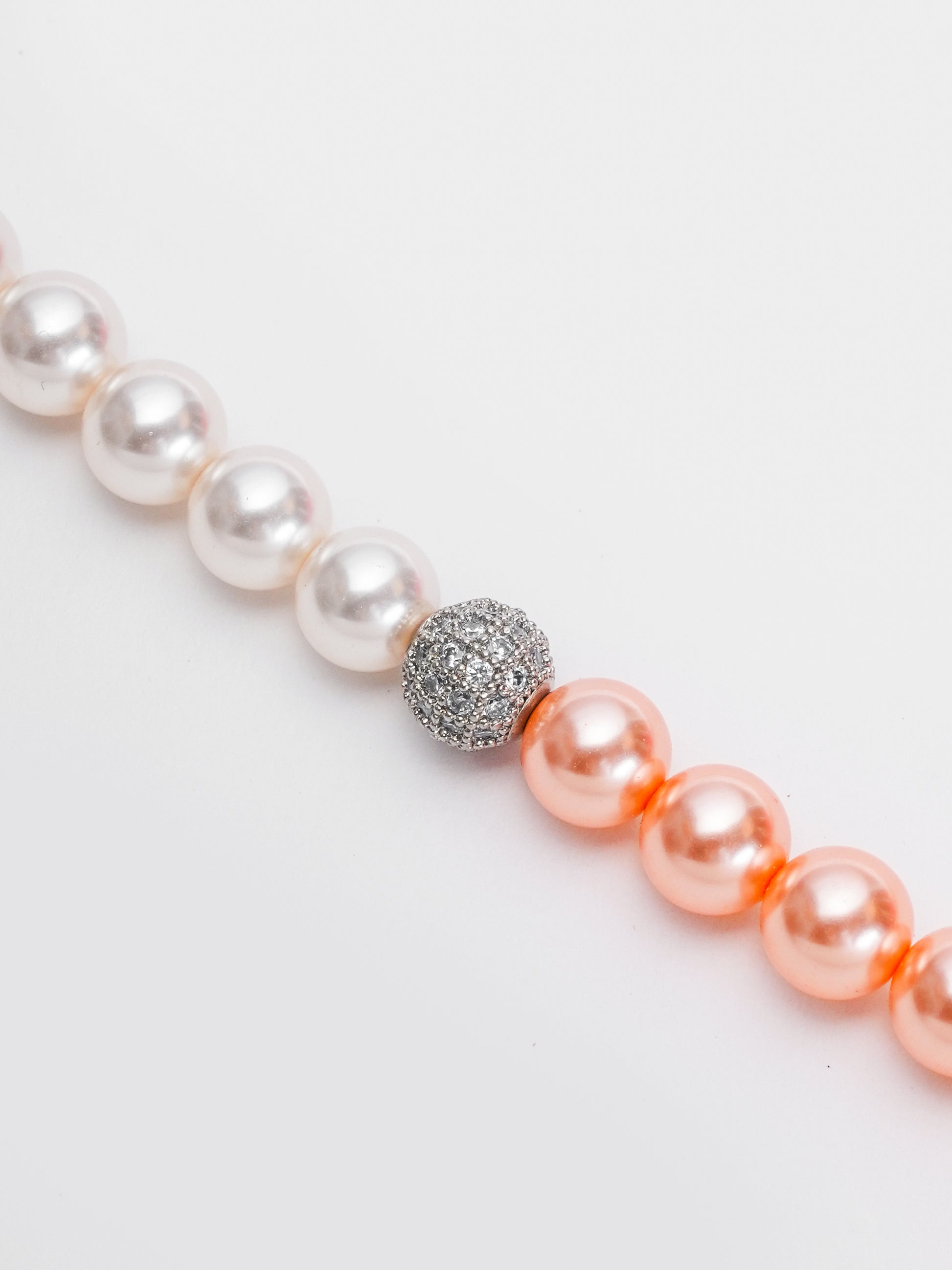 - Dual-tone gradient of peach and white pearls for a modern yet classic look