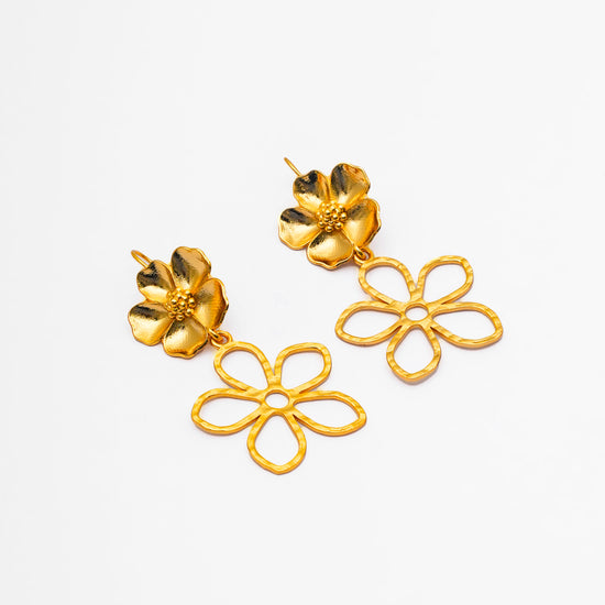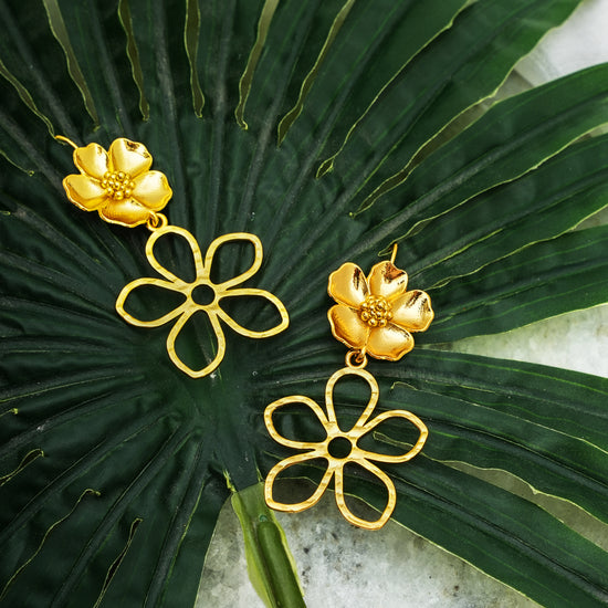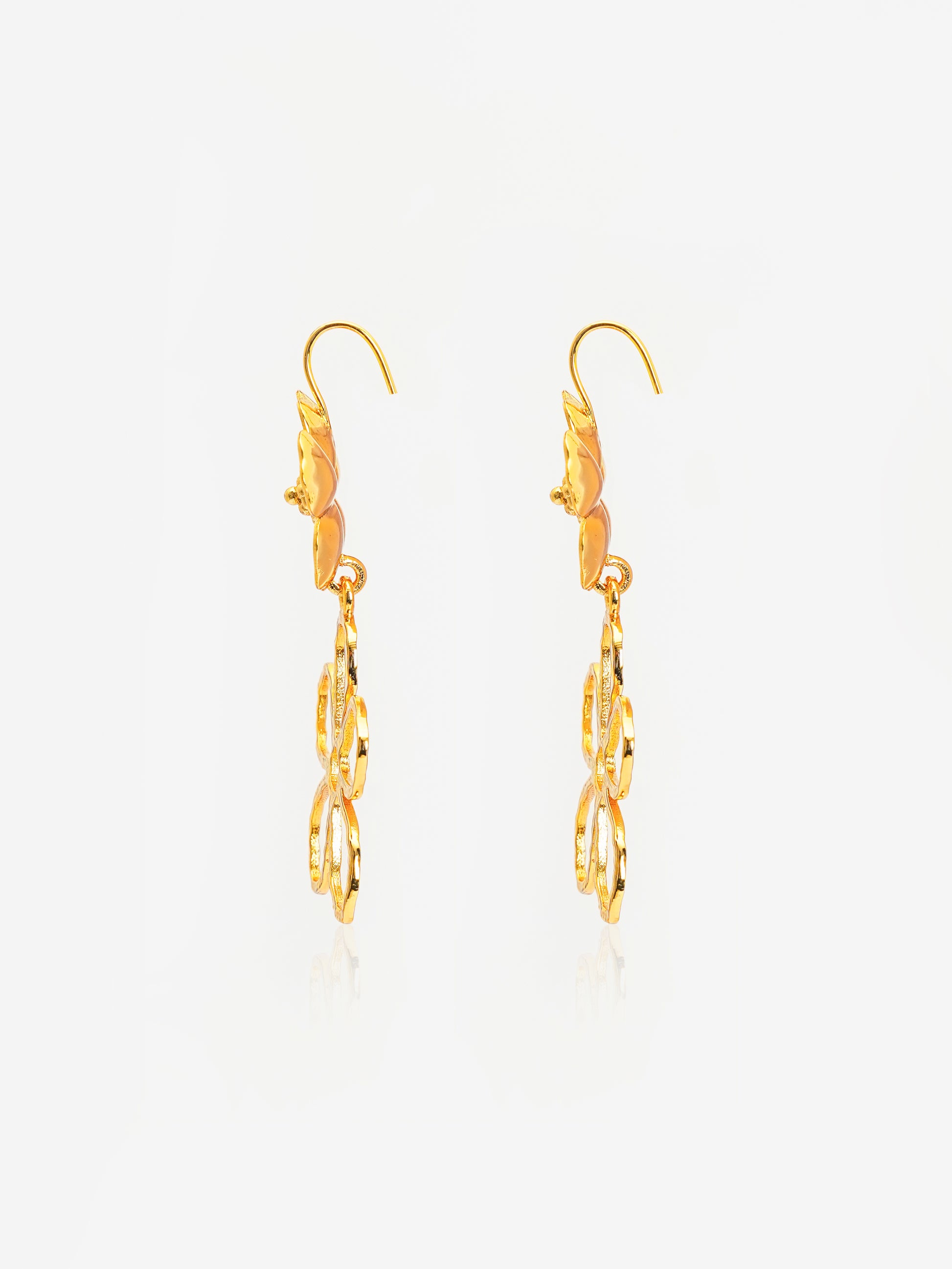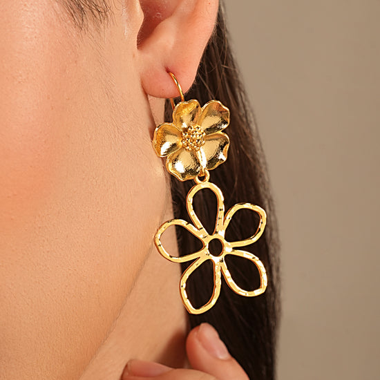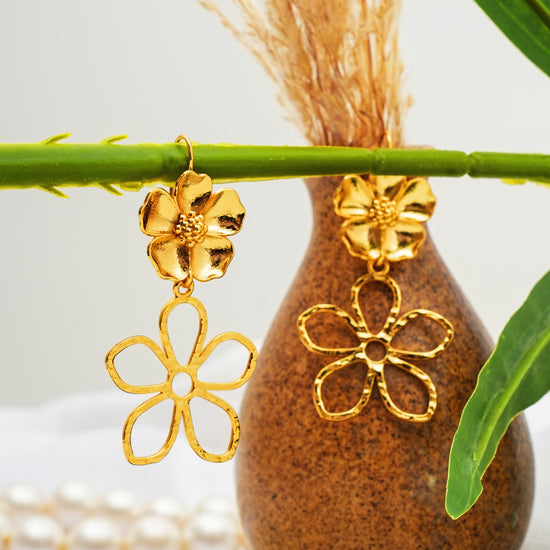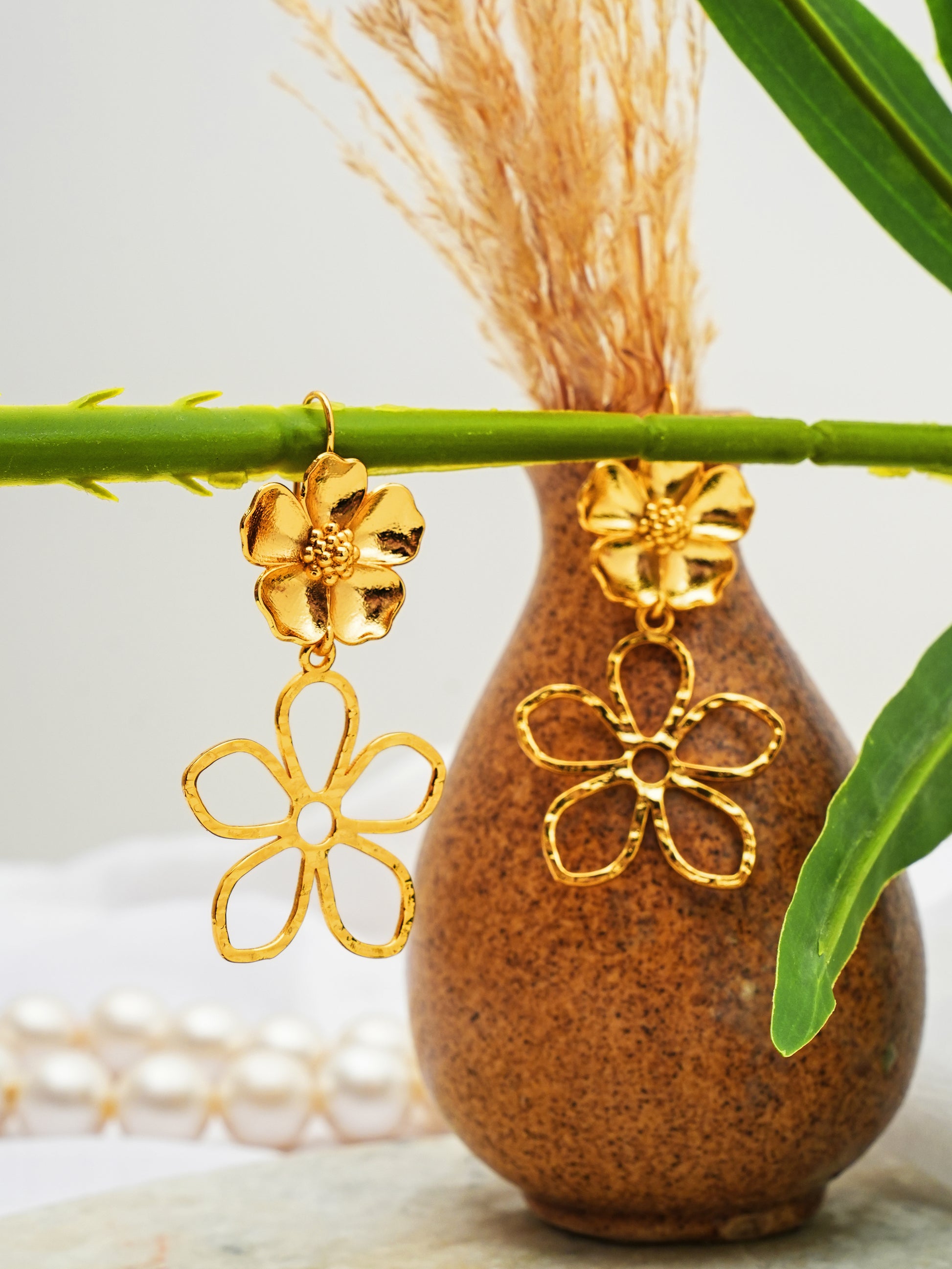 Golden Bloom Floral Drop Earrings – 18K Gold Plated Statement Jewelry