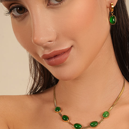 Basraa Emerald Glow Necklace – 18K Gold Plated Choker