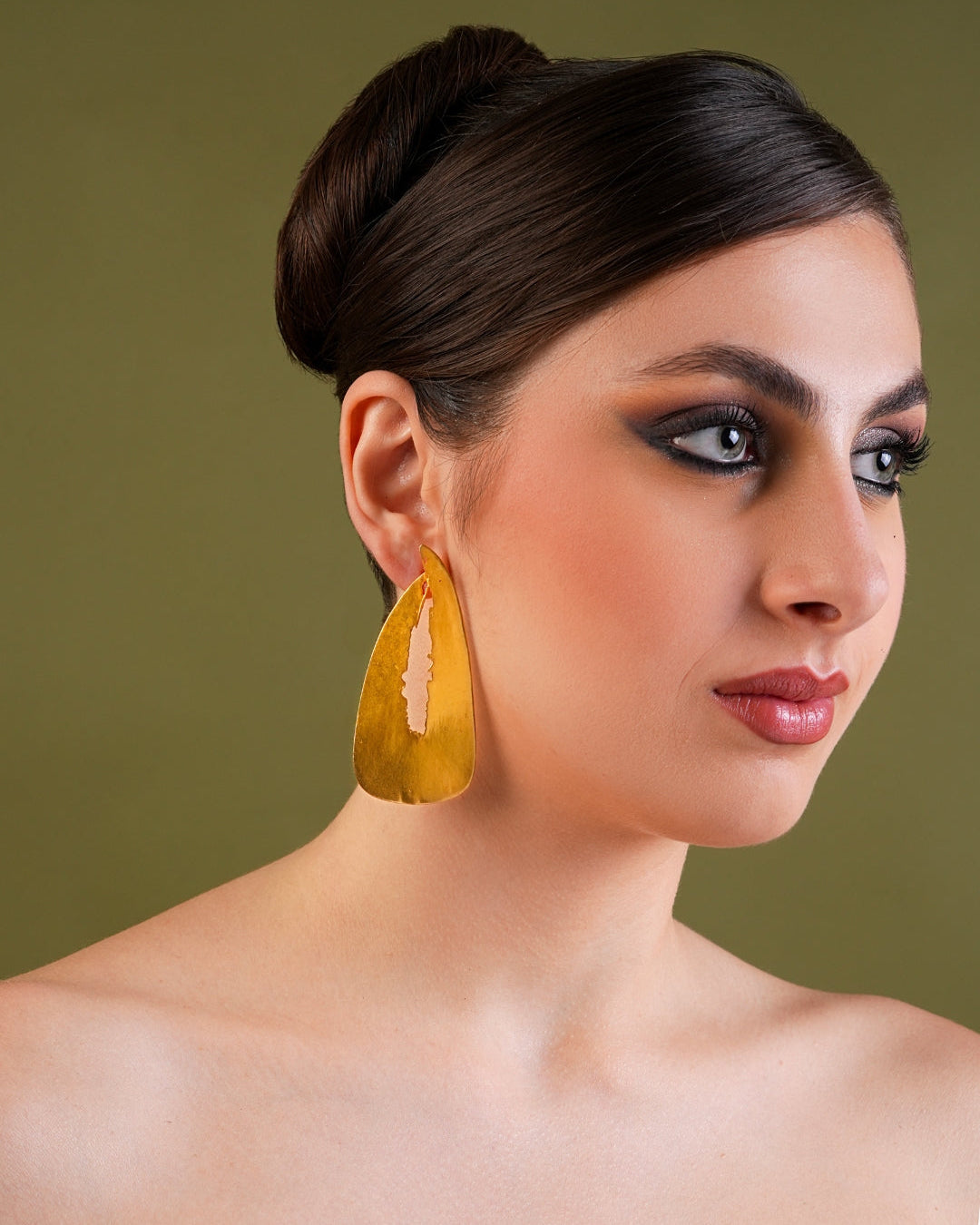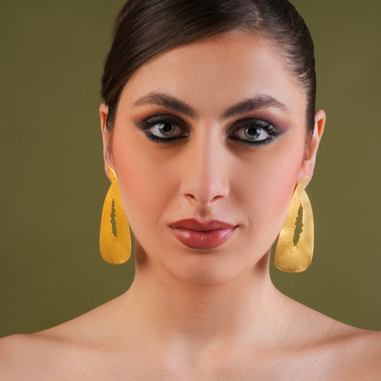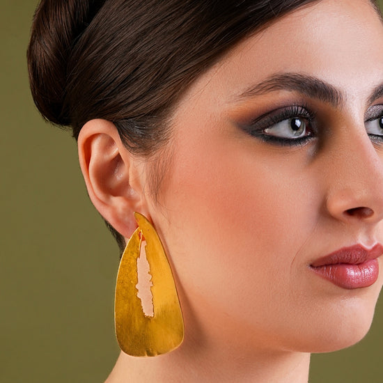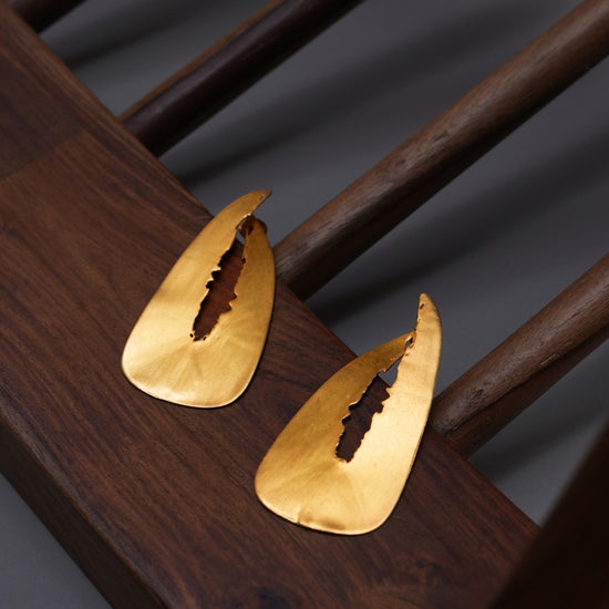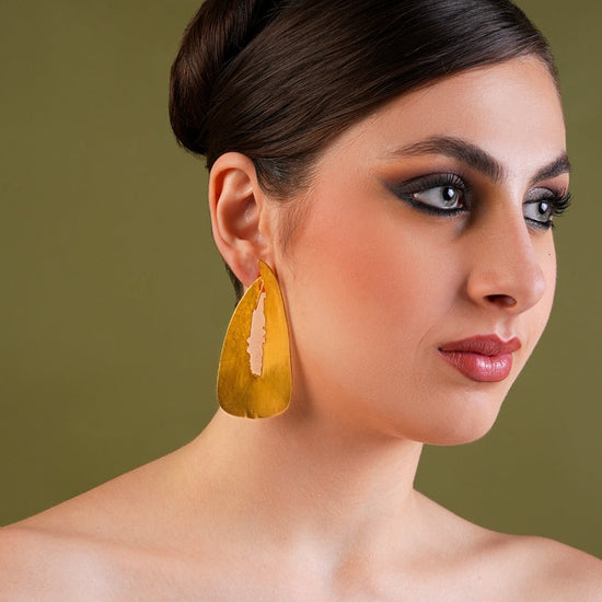 Boldly imperfect and beautifully raw, the Golden Rift Drop Earrings are a tribute to abstract elegance. Handcrafted in premium brass alloy with a matte gold finish, these earrings feature a fluid teardrop form with a rugged, organic cutout through the center—evoking nature’s untouched terrain. Lightweight yet impactful, they are perfect for art-inspired looks and expressive dressing.