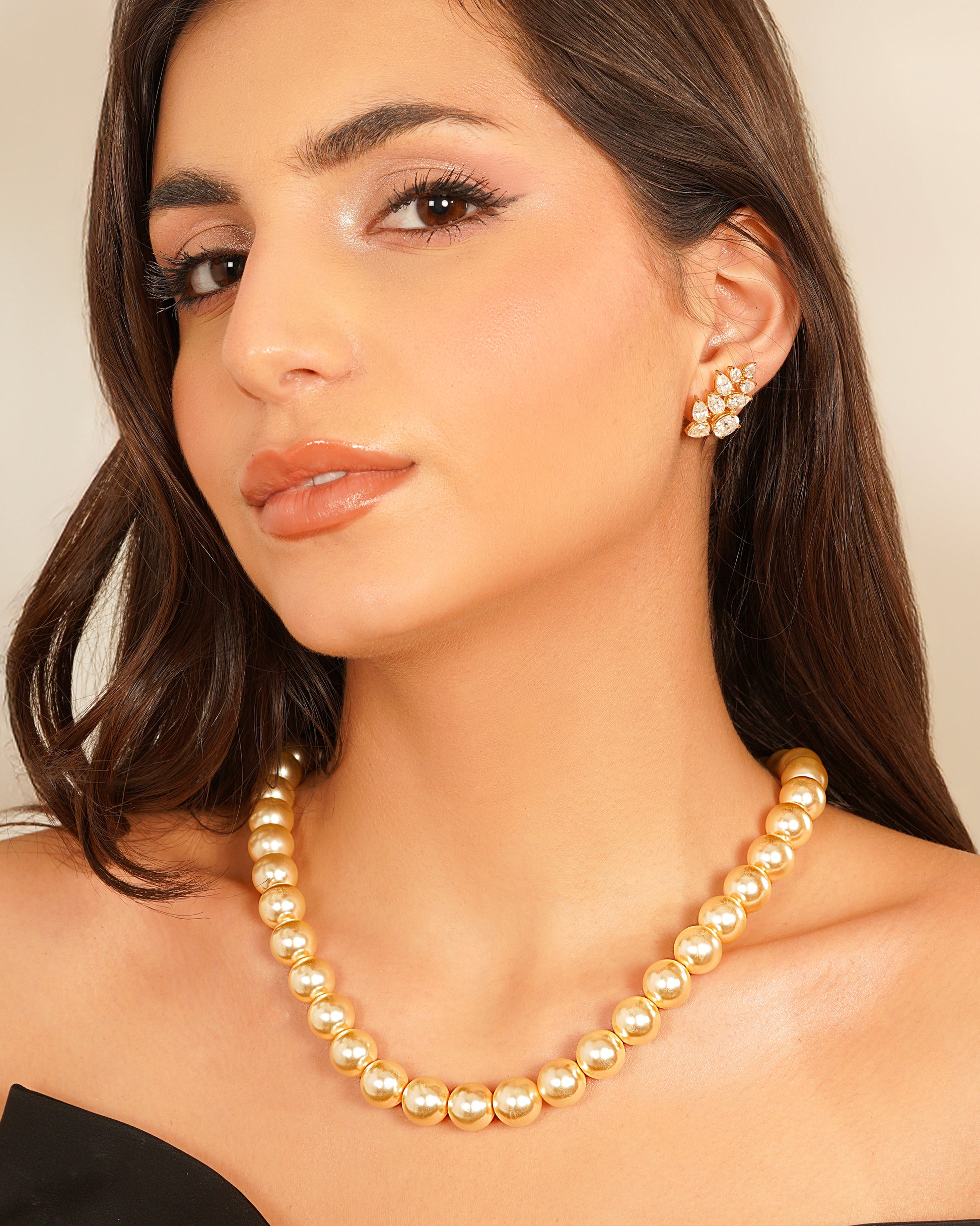 Luxurious Light Gold Crystal Pearl Necklace (Pearl size - 12mm)
