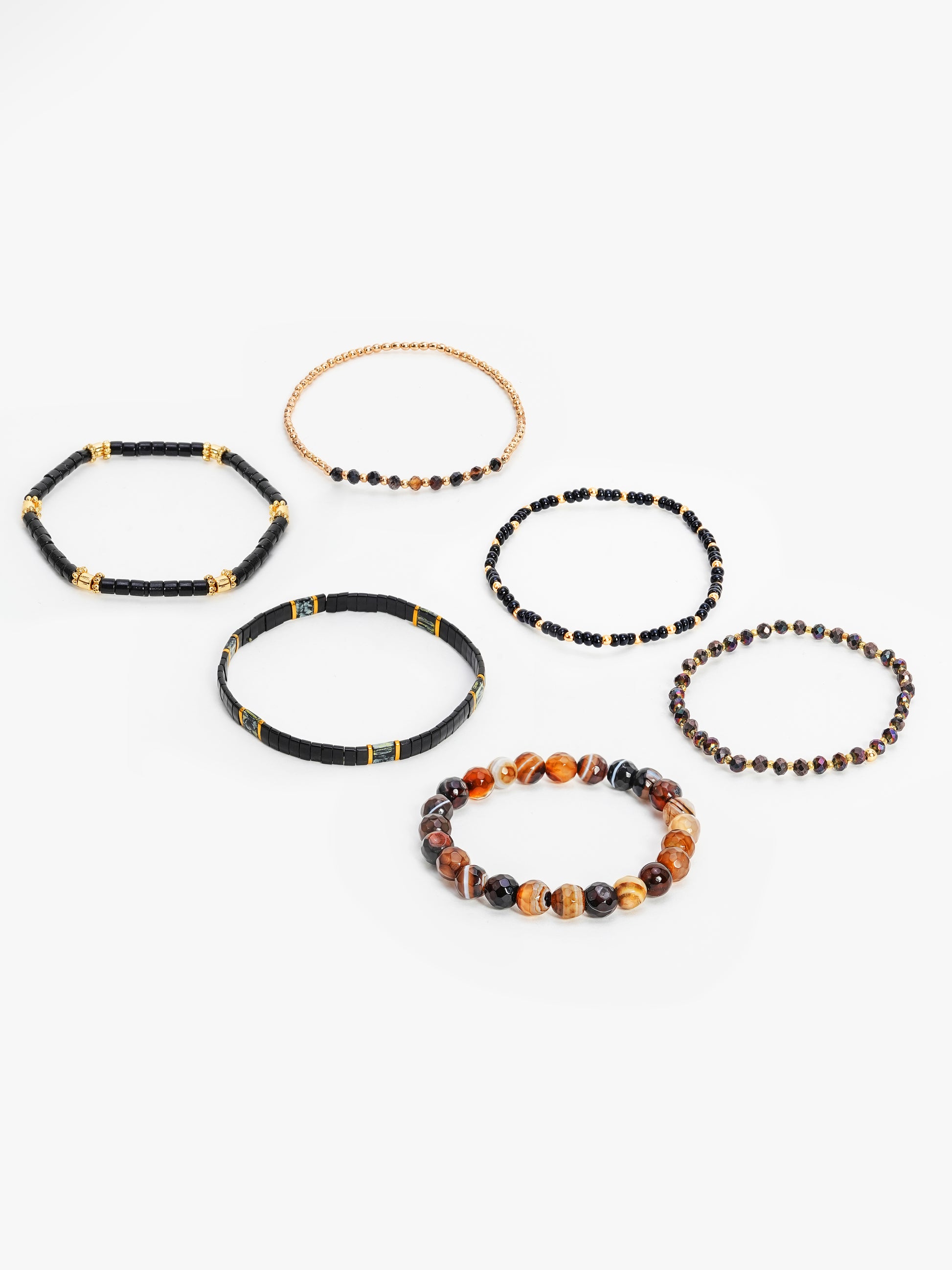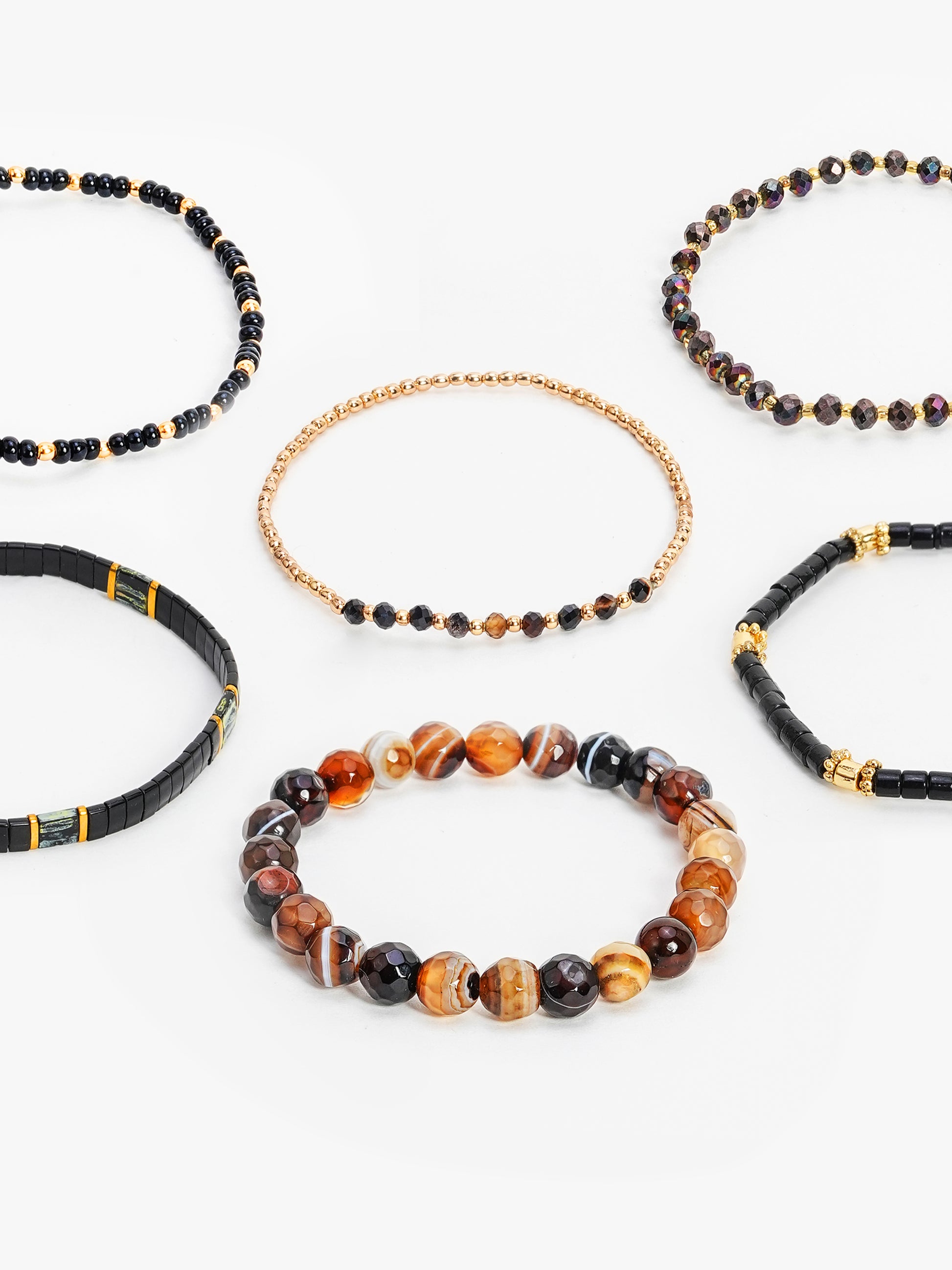 Set Includes: Multi-strand bracelet stack with a mix of textures and bead styles