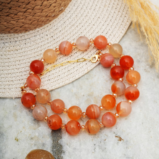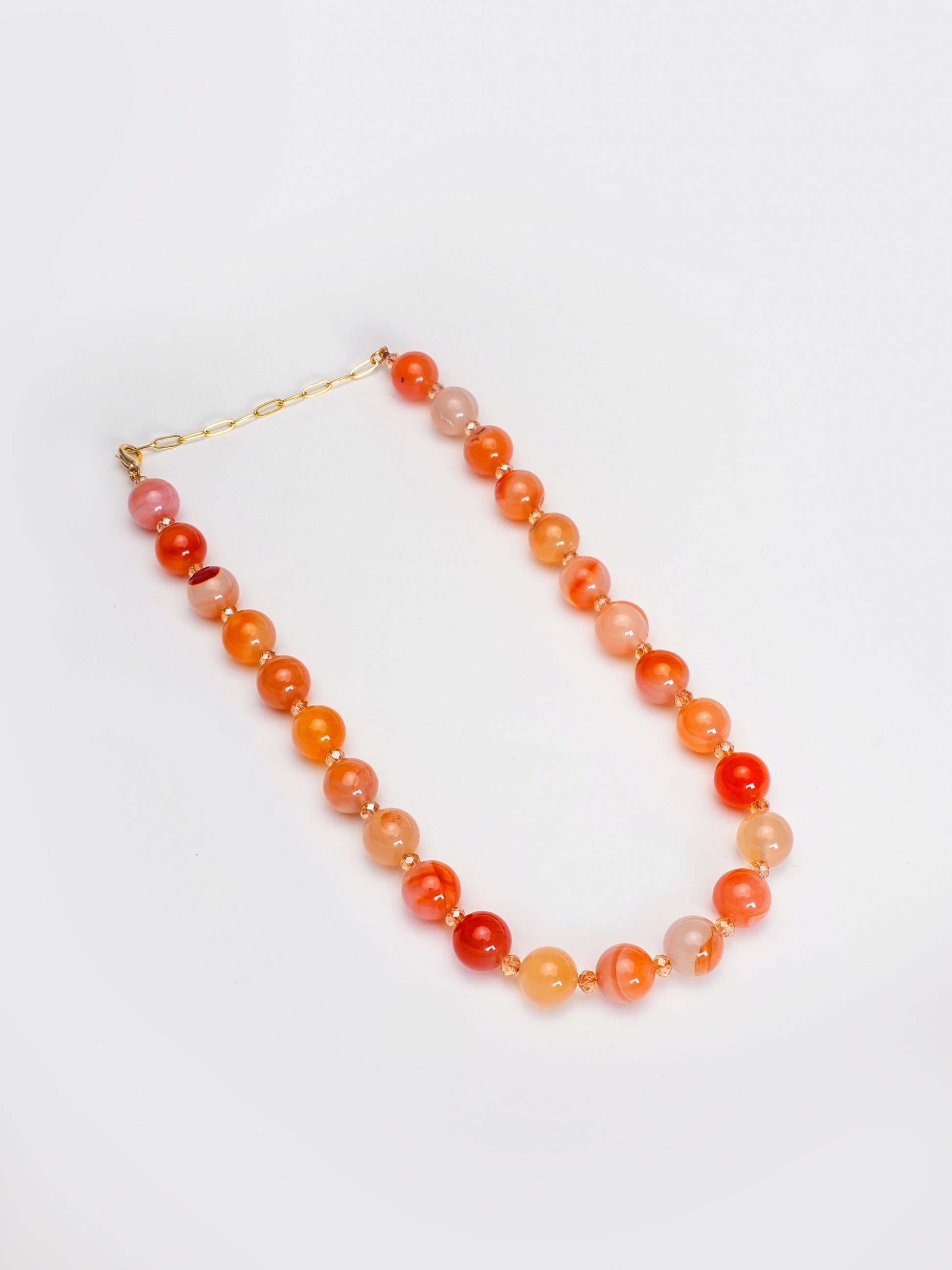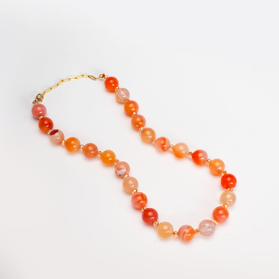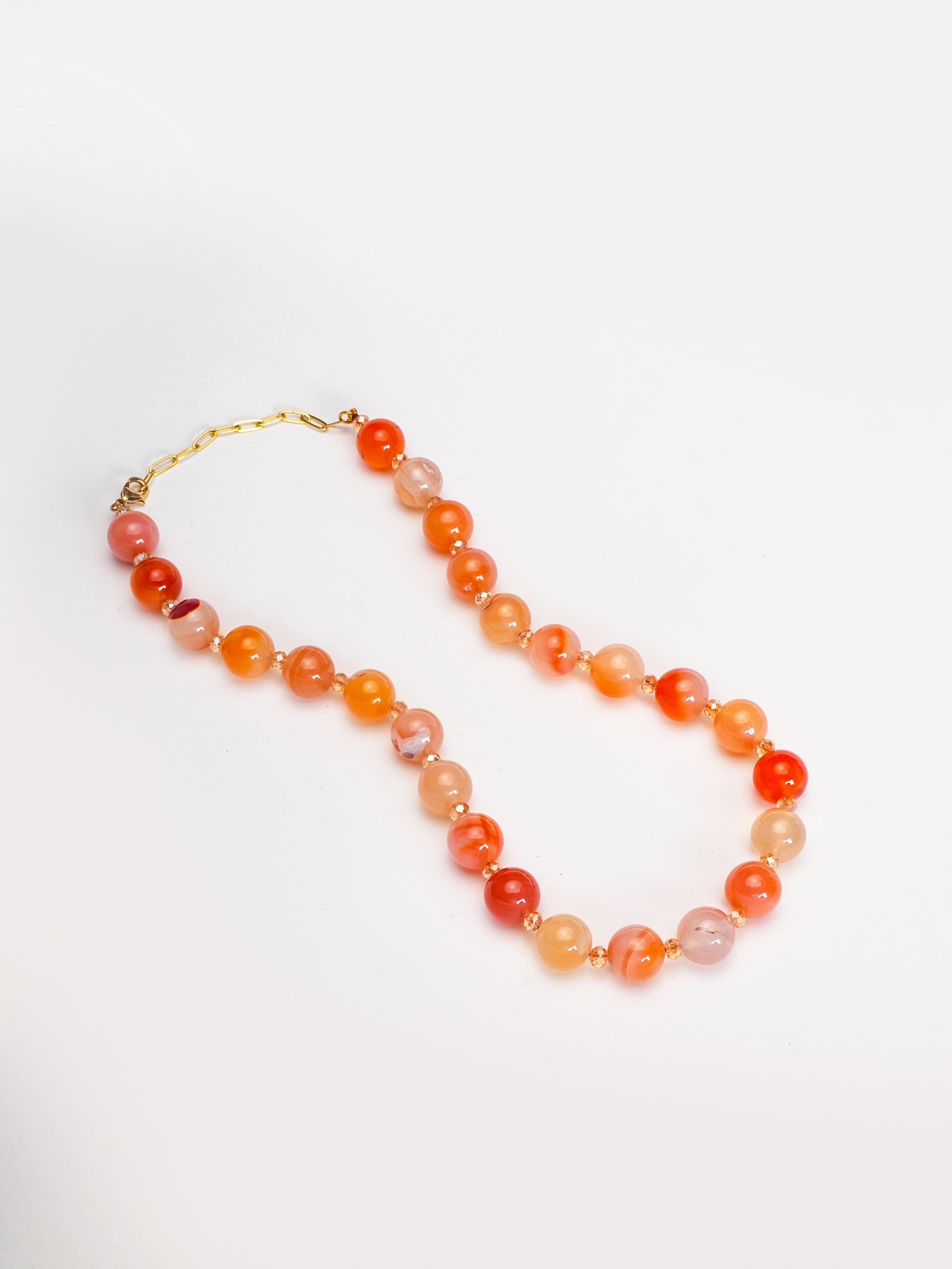 Sunset Orange Agate Beaded Necklace with Gold-Plated Chain – Basraa Gemstone Collection