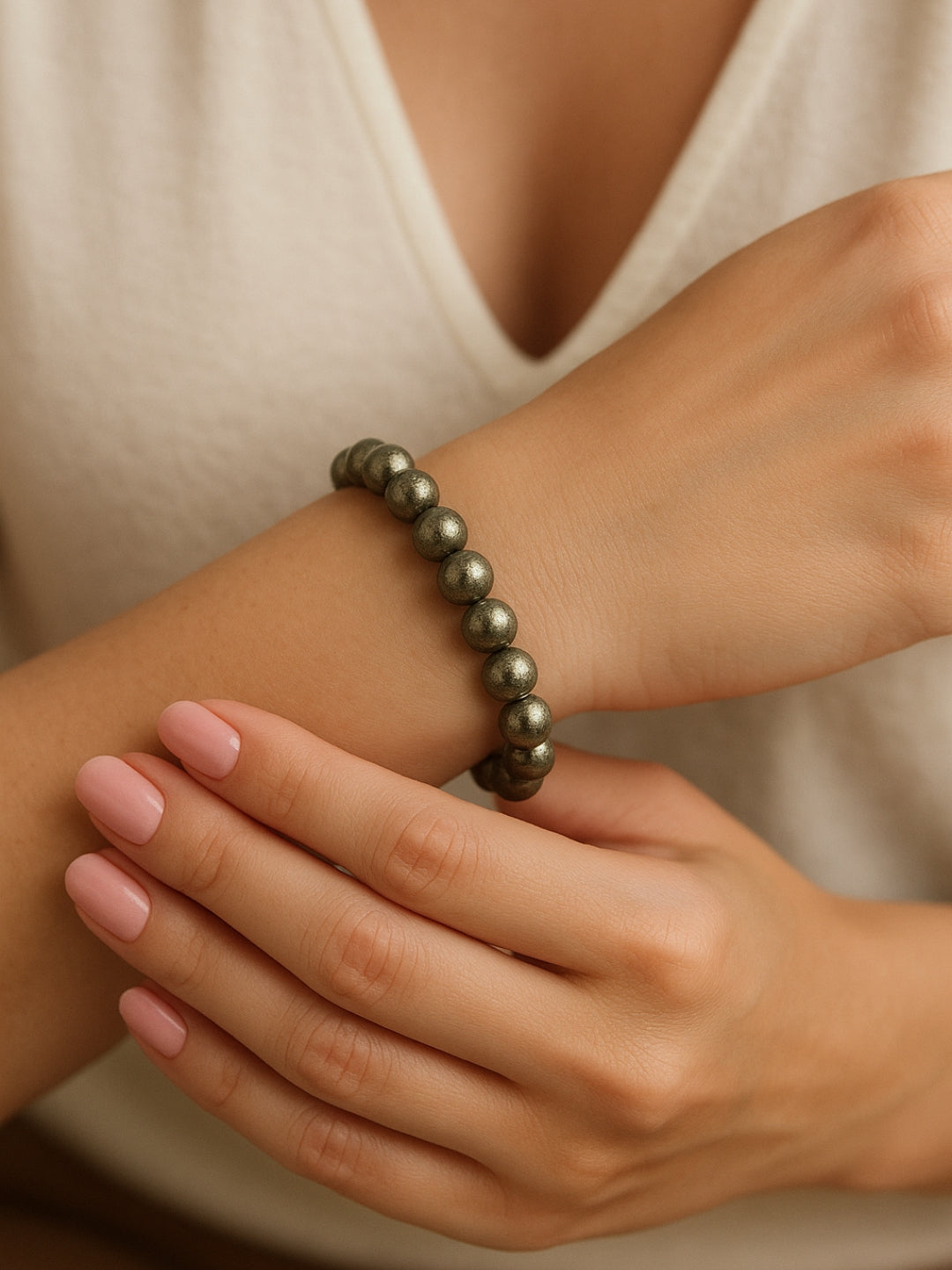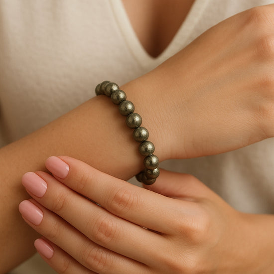 The Pyrite Bracelet is designed for women who move through the world with boldness and belief. Known as the stone of manifestation and protection, Pyrite is a symbol of confidence, ambition, and unshakable willpower.