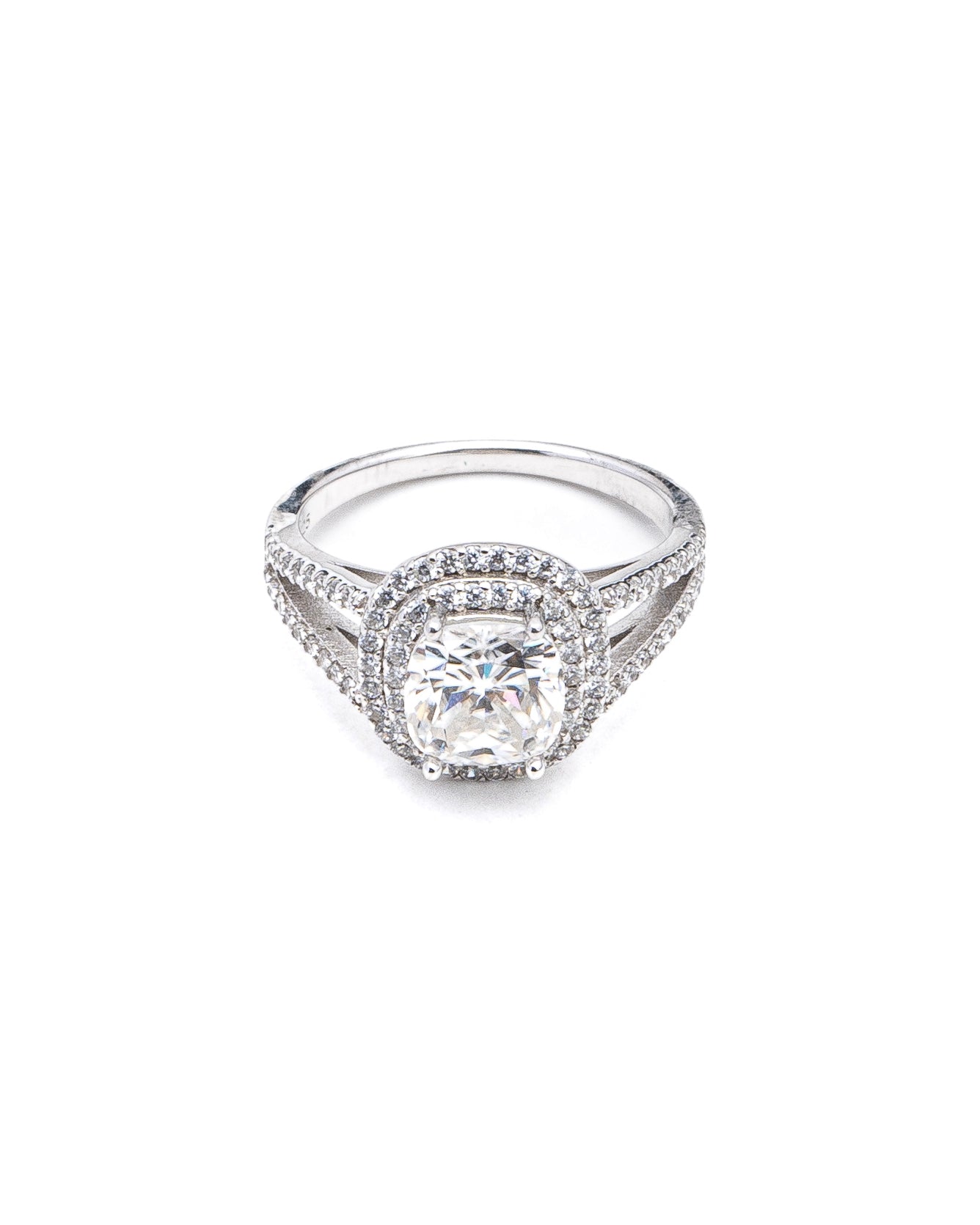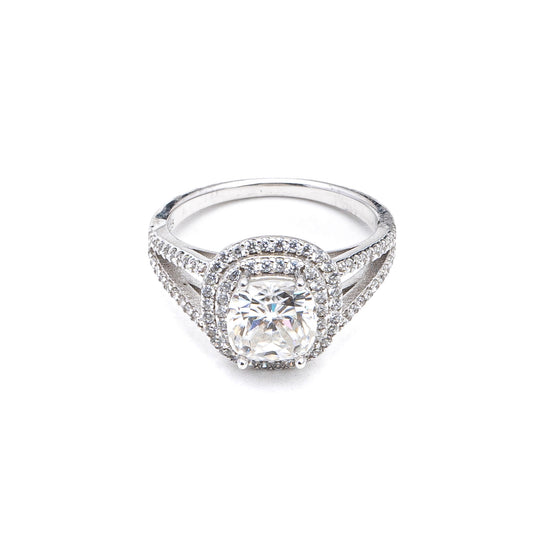 The Regal Radiance Moissanite Ring is a masterpiece of brilliance and sophistication. Designed to captivate, this exquisite ring features a 1.7-carat central moissanite encircled by a dazzling 1.5-carat moissanite halo, creating an aura of elegance and luxury. Crafted from premium 92.5 silver, the ring boasts an intricate split-shank design encrusted with shimmering moissanites, ensuring a timeless and regal appeal. Whether for an engagement, a special occasion, or simply to add a touch of radiance to your everyday style, this ring is the perfect choice.