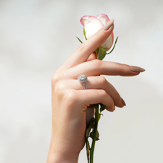 Design: Split-shank with encrusted moissanites