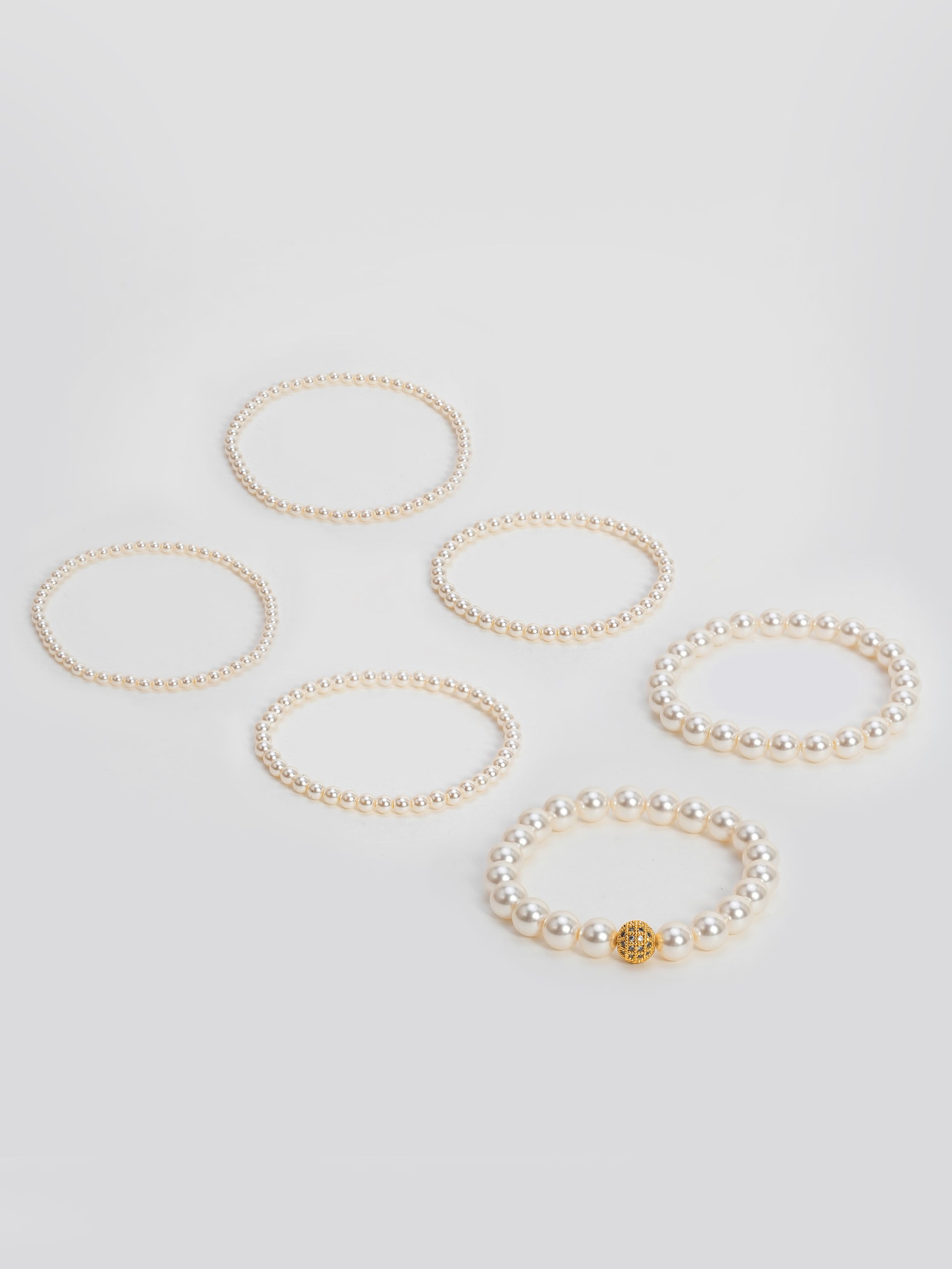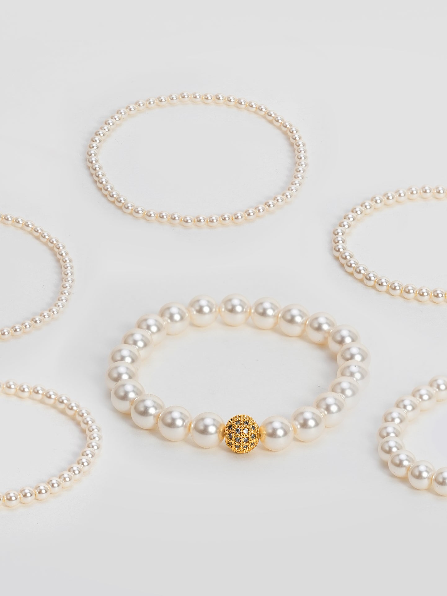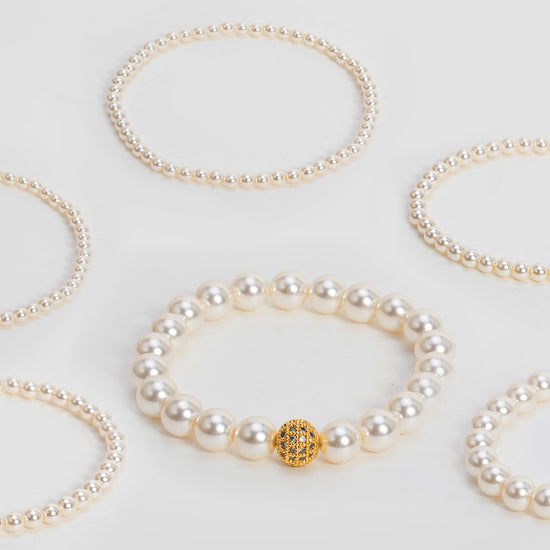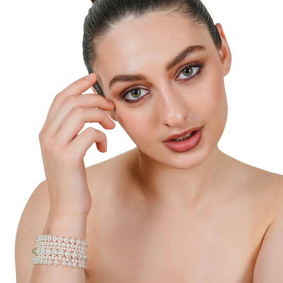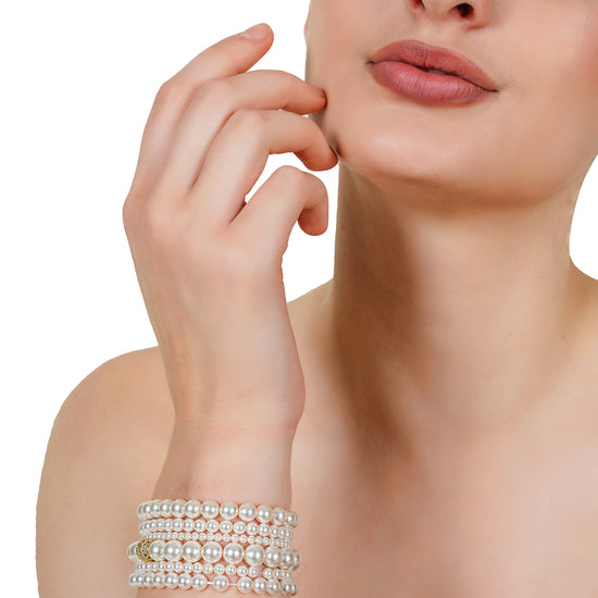 Make a bold yet timeless statement with the Regalia Pearl Cuff, a refined piece designed for lovers of classic elegance. Featuring premium crystal pearls in a multi-strand design, this bracelet wraps around your wrist to form a cuff-like effect that’s both sophisticated and striking. A single pave-detailed bead adds a hint of sparkle—perfect for festive occasions or everyday grace.