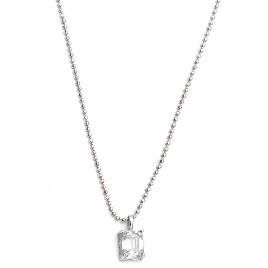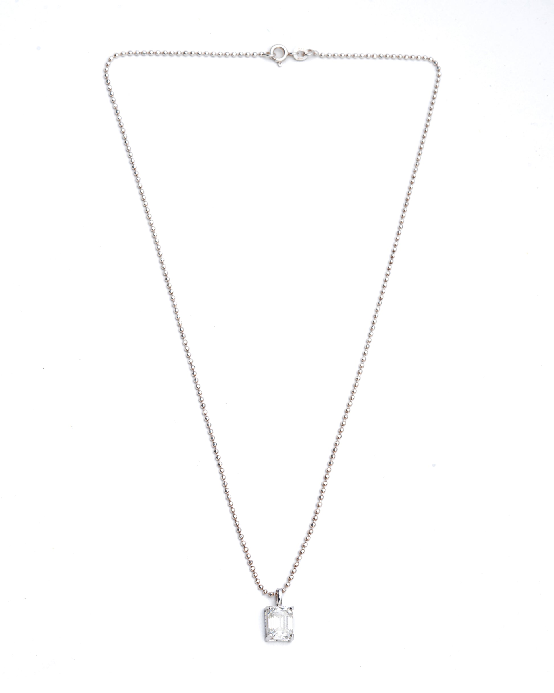 The Solitaire Emerald Moissanite Pendant is a stunning representation of refined elegance and simplicity. Showcasing a 2.5-carat emerald-cut moissanite stone, this pendant exudes a brilliant sparkle that catches the light from every angle.