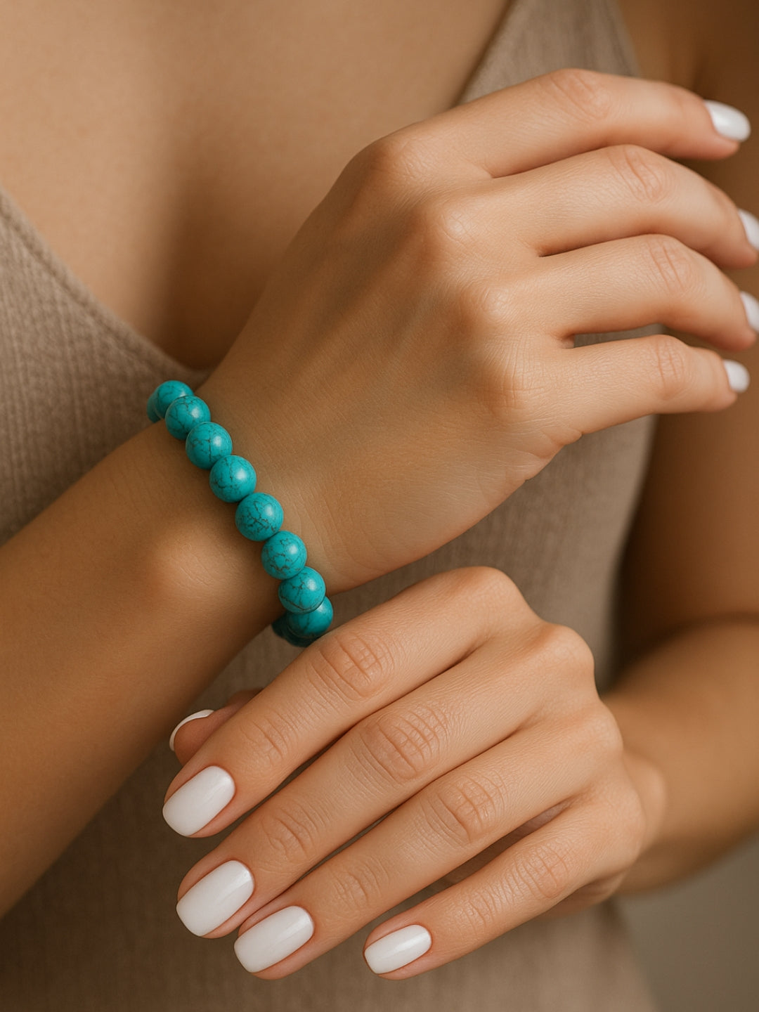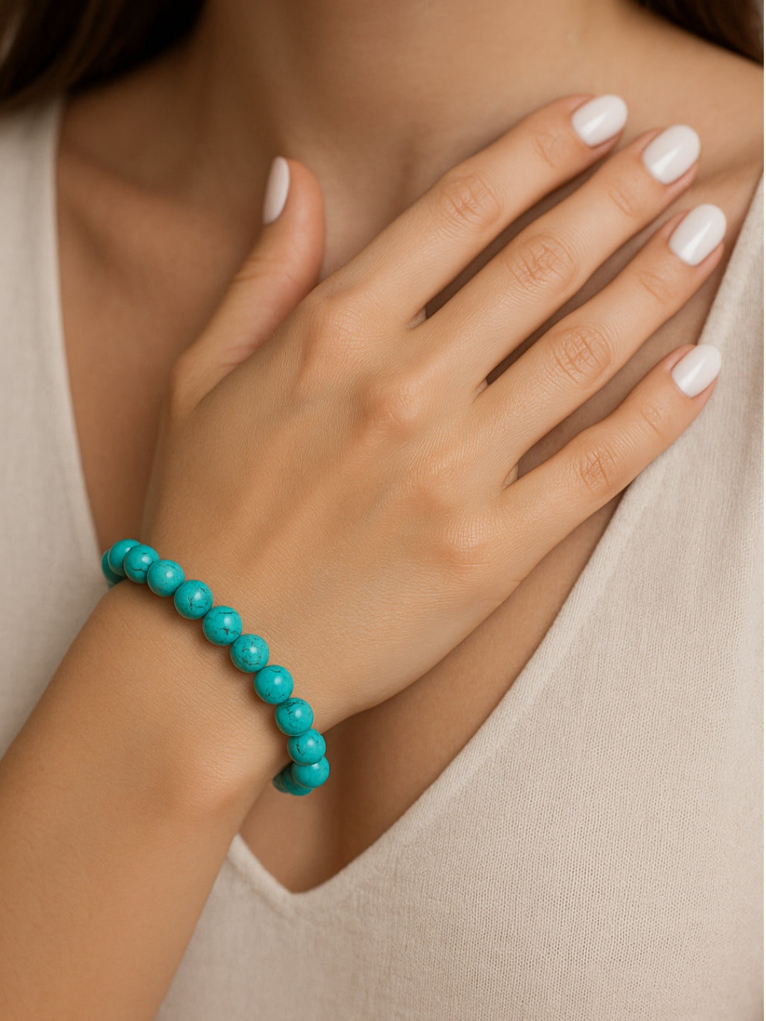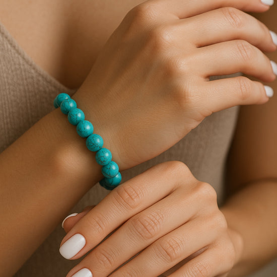 The Turquoise Bracelet is crafted for the woman who owns her truth and walks her unique path. Known as the stone of protection and self-expression, Turquoise encourages open communication, inner healing, and fearless authenticity.