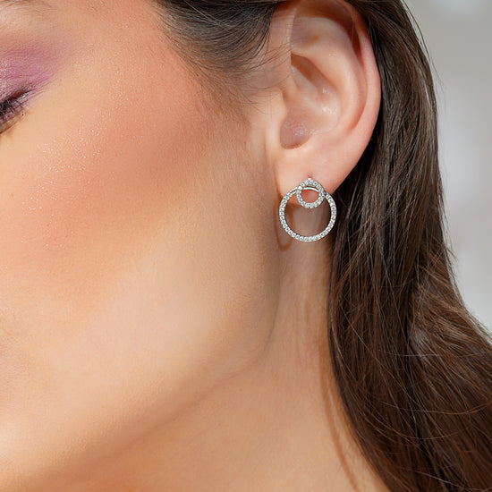 Design: Elegant double-circle earrings encrusted with premium moissanite diamond.