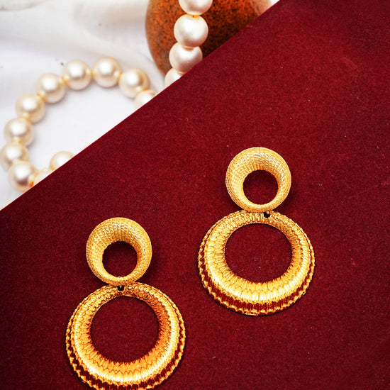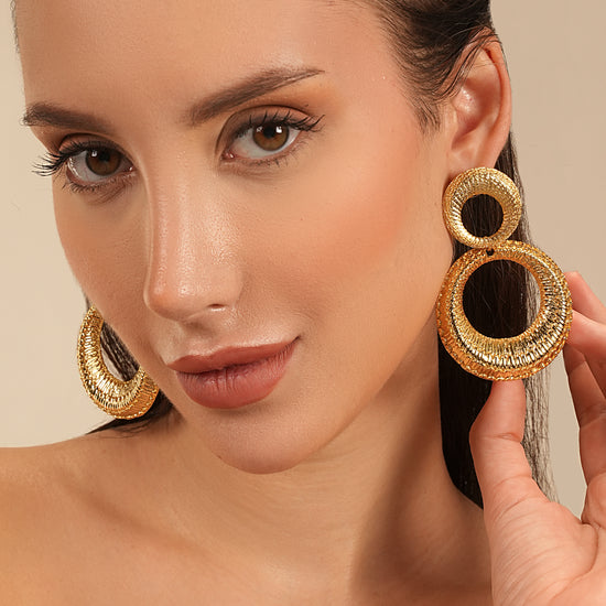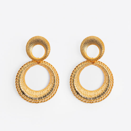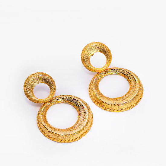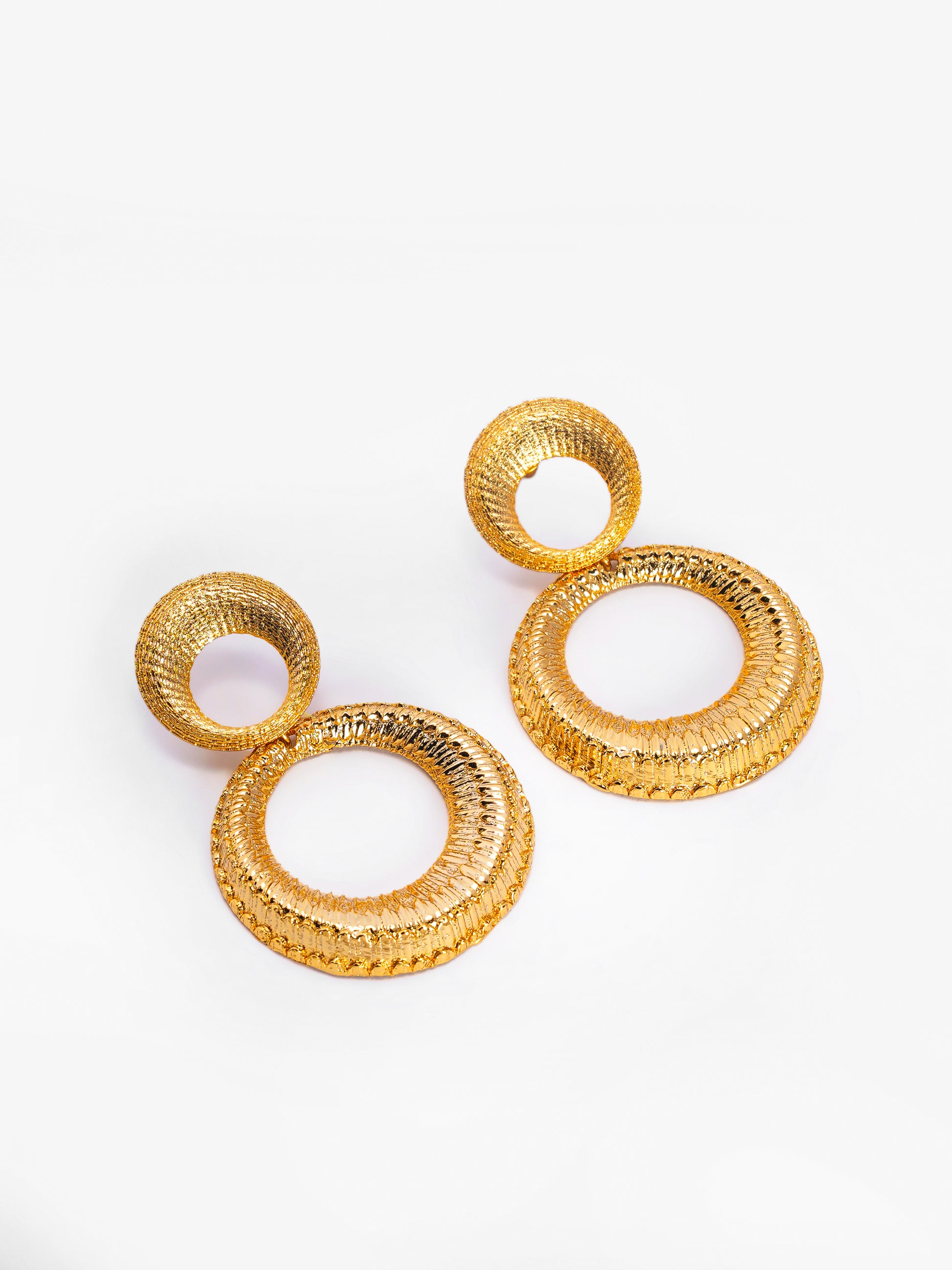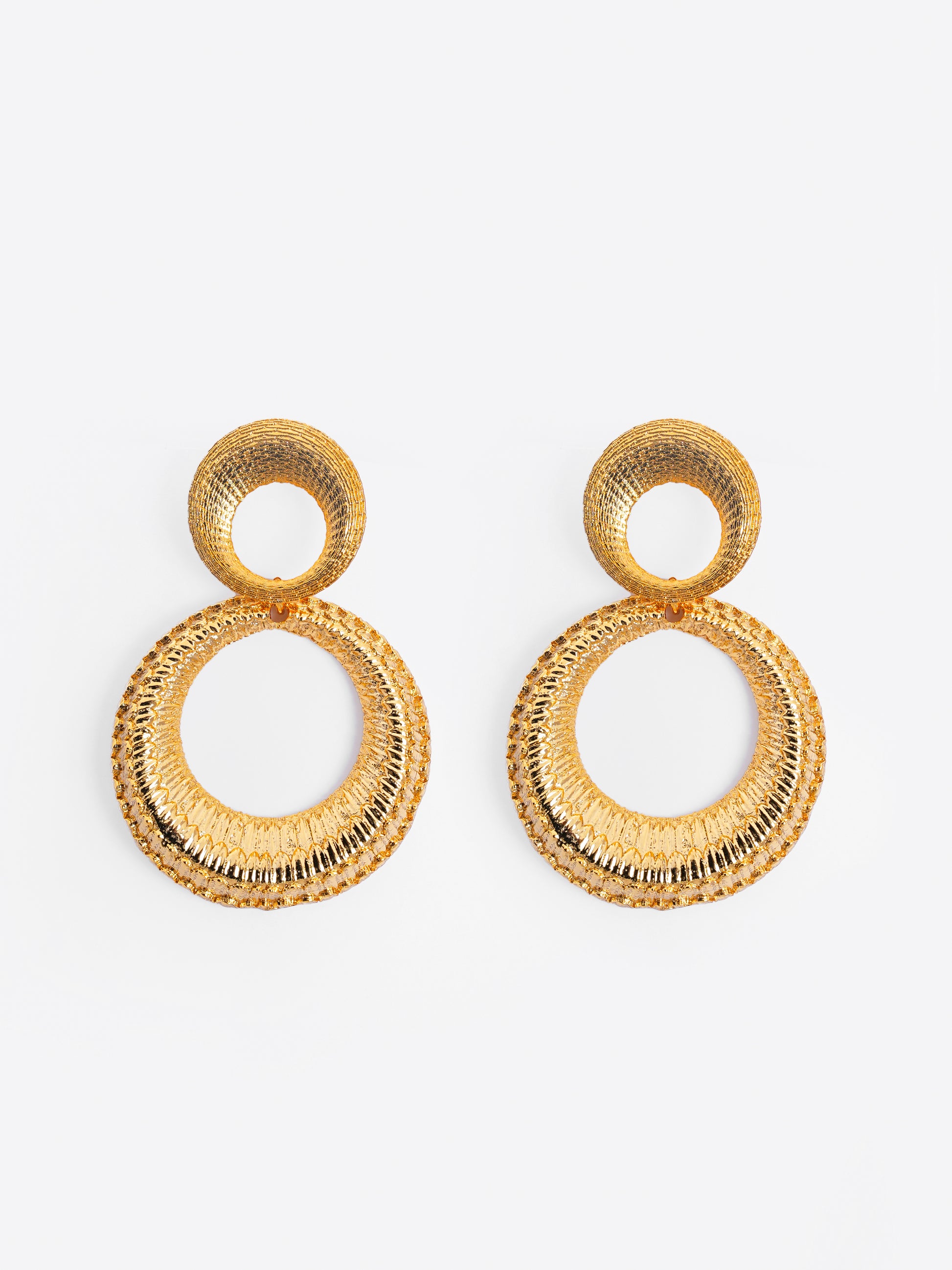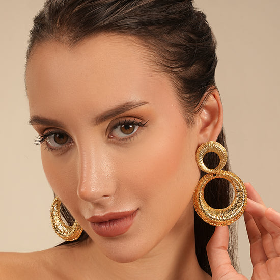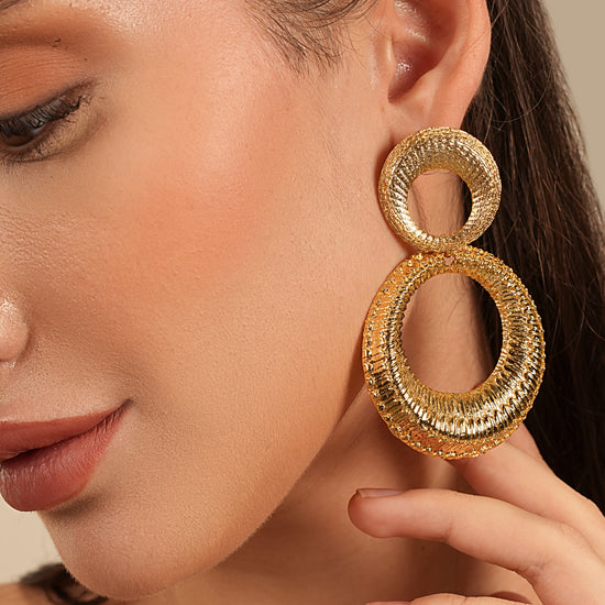 Dual Circle Textured Gold-Plated Statement Earrings – Basraa Luxe Edition